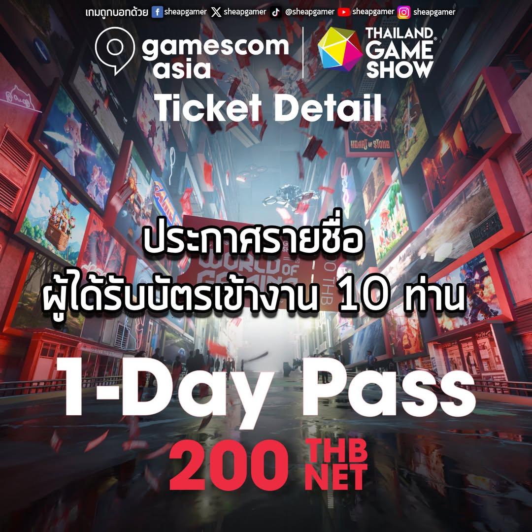 ประกาศรายชื่อกิจกรรมแจกรางวัลบัตรเข้างาน gamescom asia x Thailand Game Show 2025 กับเพจเกมถูกบอกด้วย . โดยผู้โชคดีทั้ง 1…