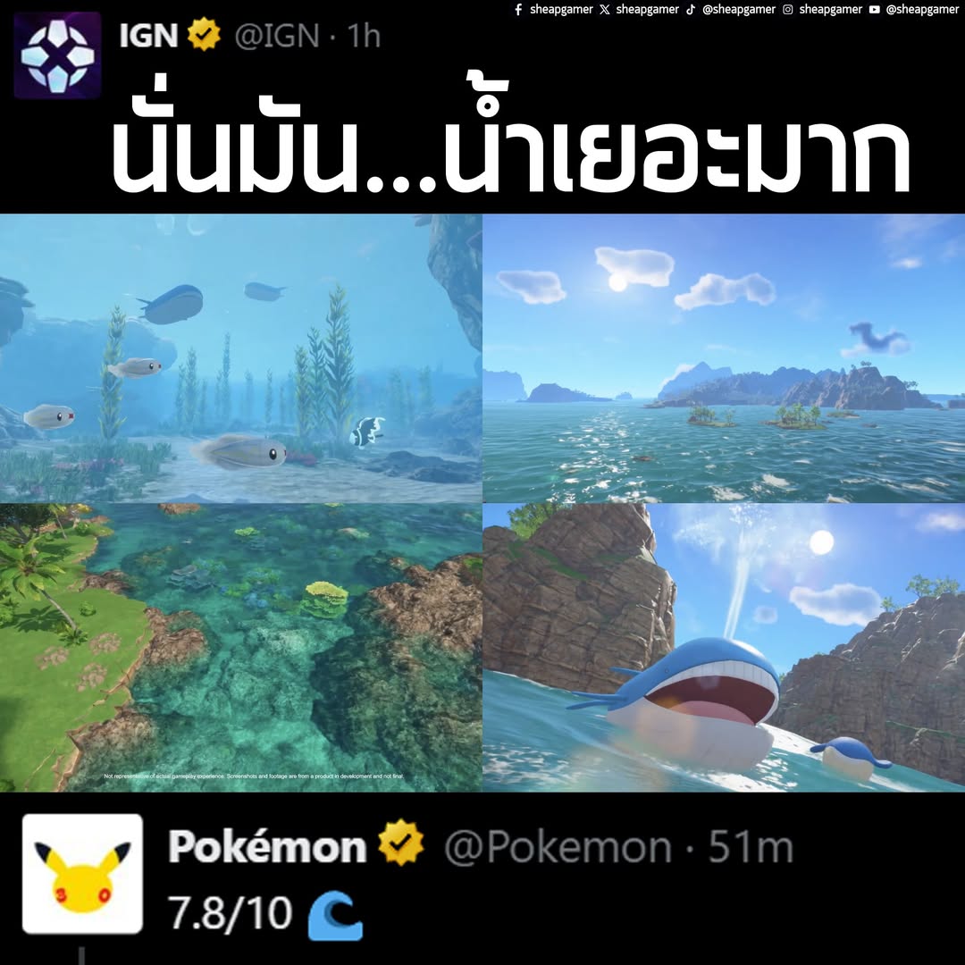 ที่พีคกว่าคือ บัญชี X หลักอย่างเป็นทางการของ Pokémon เข้าไปตอบว่า “7.8/10 🌊”