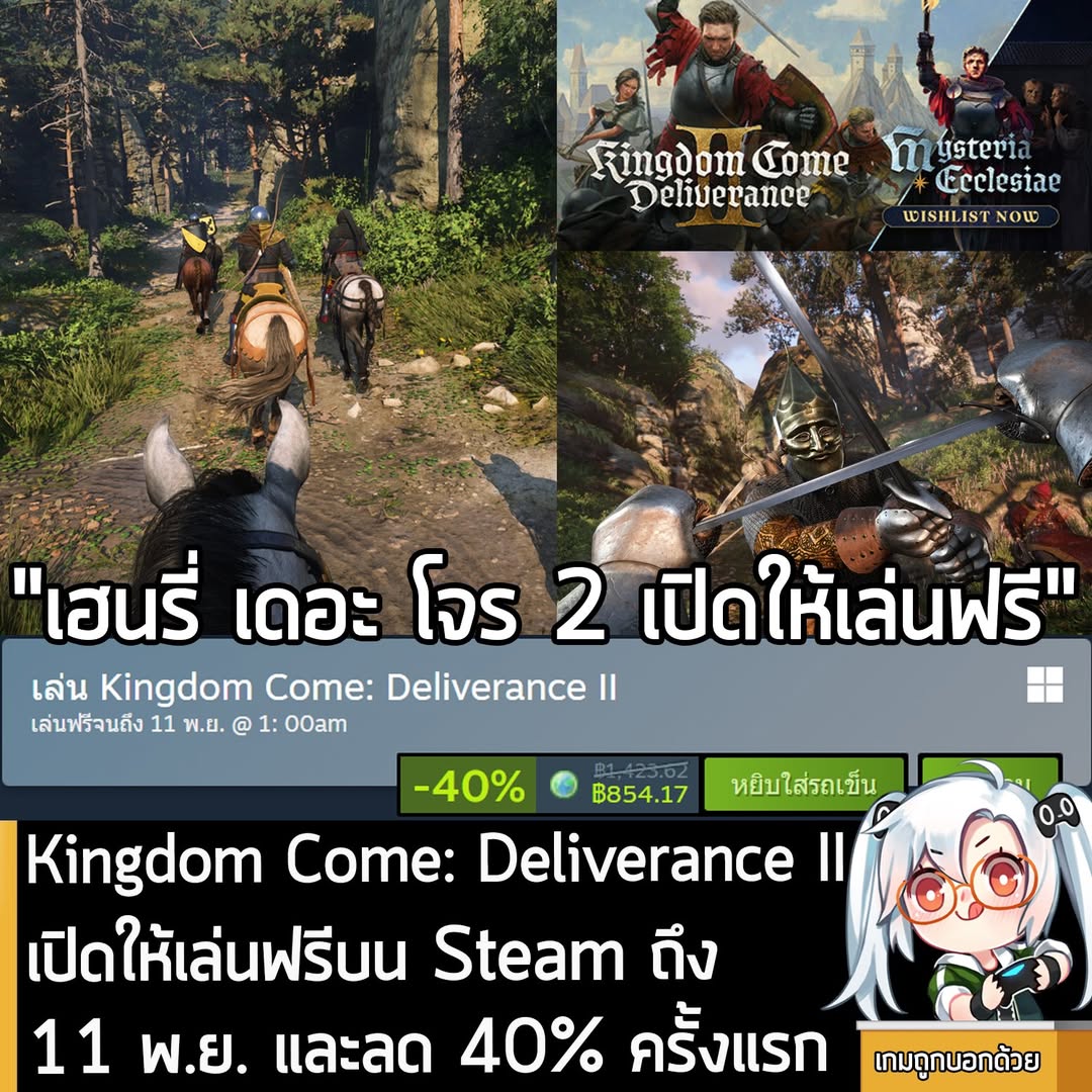 อันนี้เป็นเกมให้ทดลองเล่นฟรีแบบจำกัดเวลา กับ Kingdom Come: Deliverance II ที่ตอนนี้กำลังเปิดให้เล่นฟรีบน Steam ถึงวันที่ 11 พ.ย. สำหรับผู้ที่สนใจสามารถเข้าไปรับมาเล่นอย่างเมามันได้ที่หน้าร้านค้า