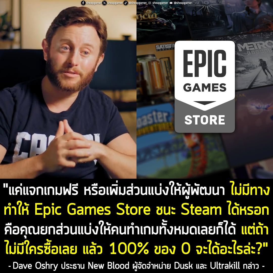 ซึ่งก่อนหน้านี้ คุณ Dave เคยให้ความเห็นว่า สิ่งที่มีประโยชน์ที่สุดของการเอาเกมไปแจกฟรีบน Epic Games Store ก็แค่เป็นเครื่องมือการตลาดเพื่อไปดึงยอดขายบนแพลตฟอร์มอื่นเท่านั้น ไม่ได้ช่วยทำให้เกมบน Epic Games Store ขายดีขึ้นหรือมีคนใช้งานเพิ่มขึ้นแต่อย่างใด