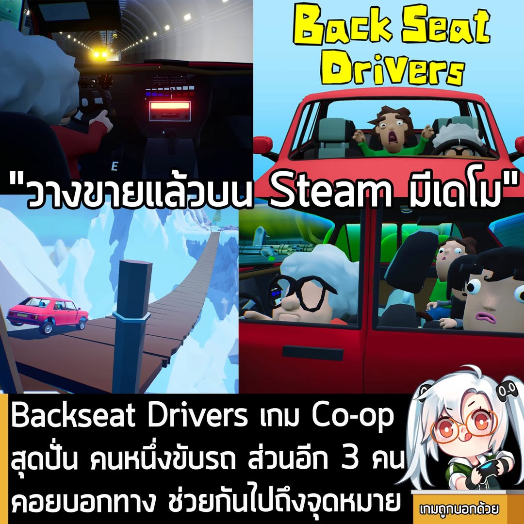 ในตอนนี้ Backseat Drivers เกม Co-op 2 คน สุดปั่น ที่ให้คุณช่วยกันขับรถ โดยคนหนึ่งขับรถ อีกคนบอกทาง ก็ได้วางจำหน่ายอย่างเป็นทางการในร้านค้า Steam แล้ว โดยเปิดตัวลด 20% เหลือ 176 บาท (ซื้อคนเดียว แต่คนอื่นๆ สามารถร่วมเล่นออนไลน์ได้ฟรี ผ่านระบบ Friend’s Pass)