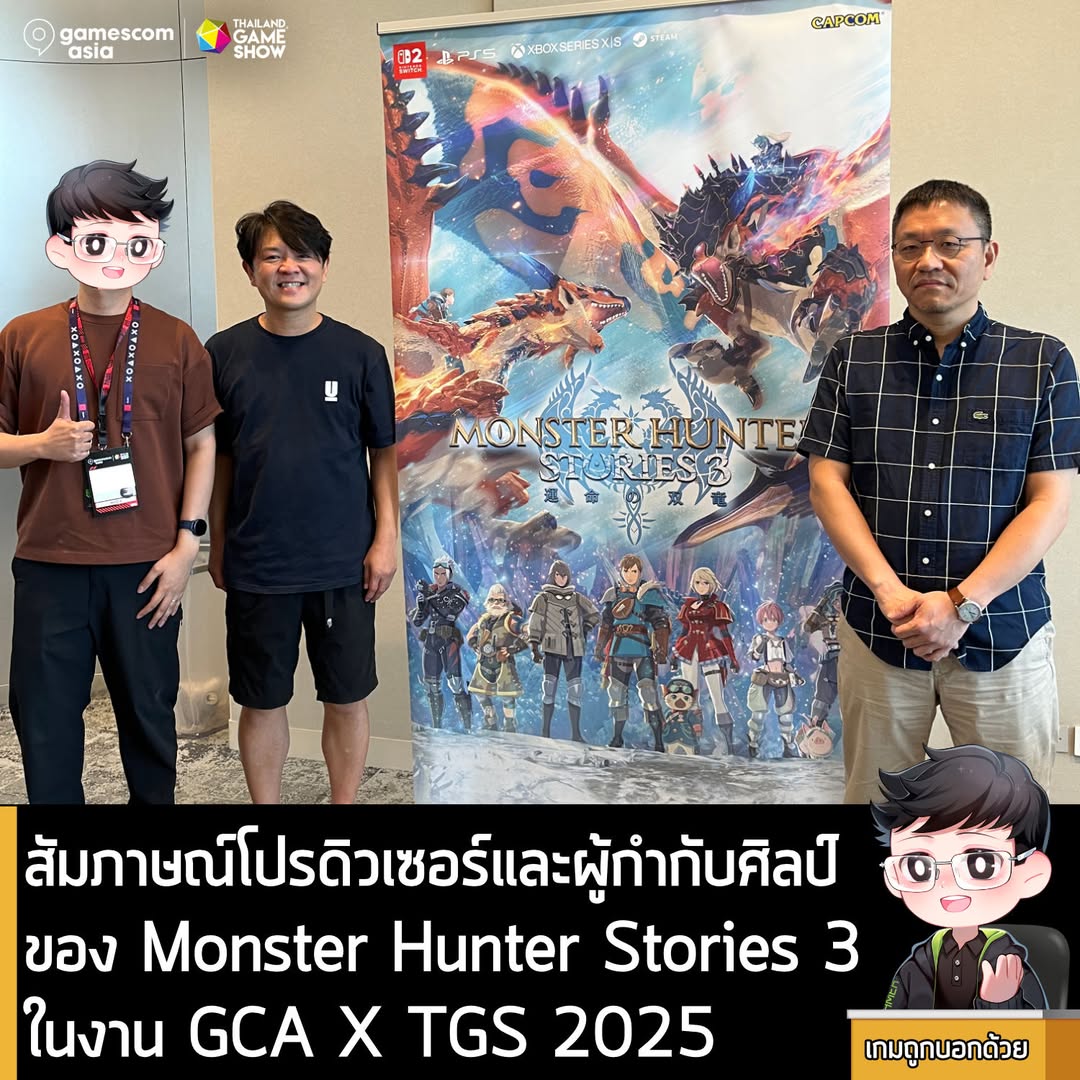 เมื่อวันที่ 17 ต.ค. ที่ผ่านมาในช่วงของงาน Business to Business ทางเพจเกมถูกบอกด้วย ได้รับโอกาสเป็นหนึ่งในสื่อได้เข้าสัมภาษณ์ คุณ Ryozo Tsujimoto โปรดิวเซอร์คนดังของซีรีย์ Mosnter Hunter และคุณ Takahiro Kawano ผู้กำกับศิลป์ โดยทั้ง 2 ท่านได้ให้สัมภาษณ์เกี่ยวกับเกม Monster Hunter Stories 3: Twisted Reflection ซึ่งเป็นเกมใหม่ล่าสุดของซีรีส์ Monster Hunter Stories โดยมีบทสนทนาที่น่าสนใจดังนี้