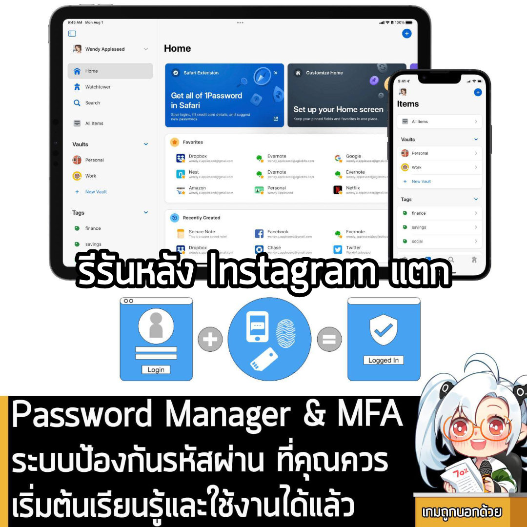 ต่อมา หลายคนก็กังวลว่า “ถ้า Password Manager โดนแฮกล่ะ?” นี่คือเหตุผลที่เราต้องมี MFA หรือ Multi-Factor Authentication หรือการยืนยันตัวตนหลายชั้นเข้ามาเสริมครับ มันคือการล็อกอินที่ต้องใช้มากกว่าแค่รหัสผ่าน