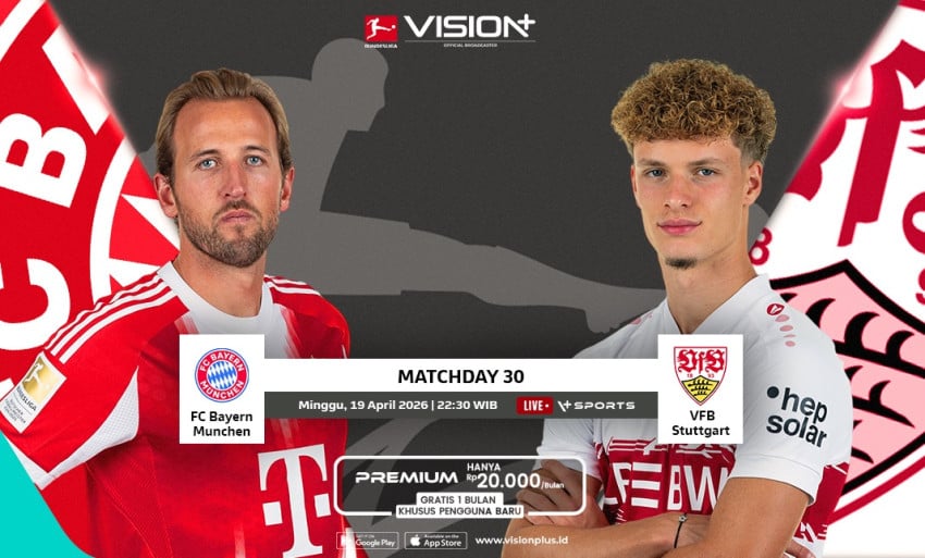 Jangan lewatkan keseruan Kejuaraan Bayern Munchen vs VfB Stuttgart Ke Minggu, 19 April 2026 pukul 22.30 WIB hanya Ke VISION+.