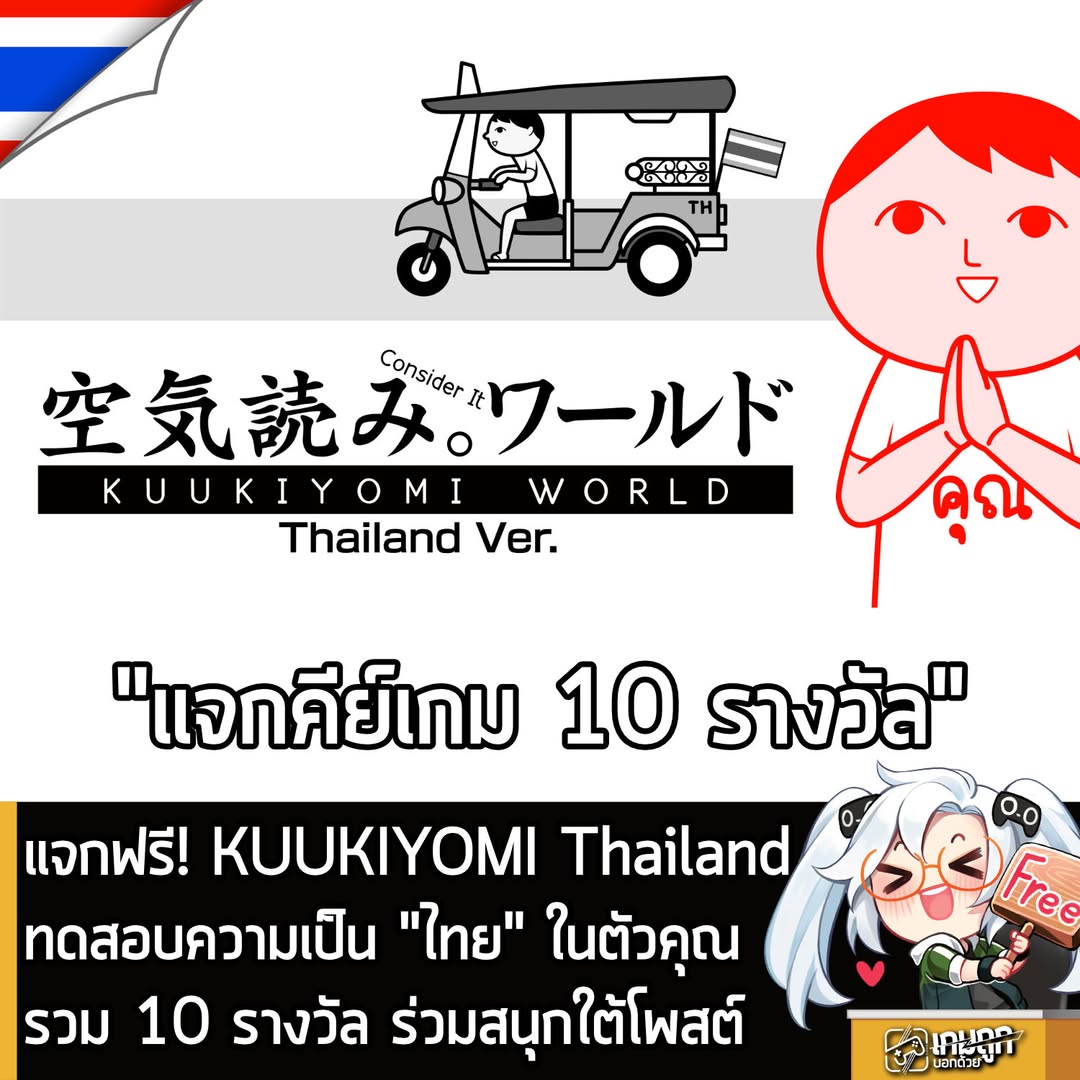[Free] แจกฟรี! Kuukiyomi Thailand ทดสอบความเป็น "ไทย" ในตัวคุณรวม 10 รางวัล ร่วมสนุกใต้โพสต์ . ทางเพจได้รับคีย์ KUUKIYOM…