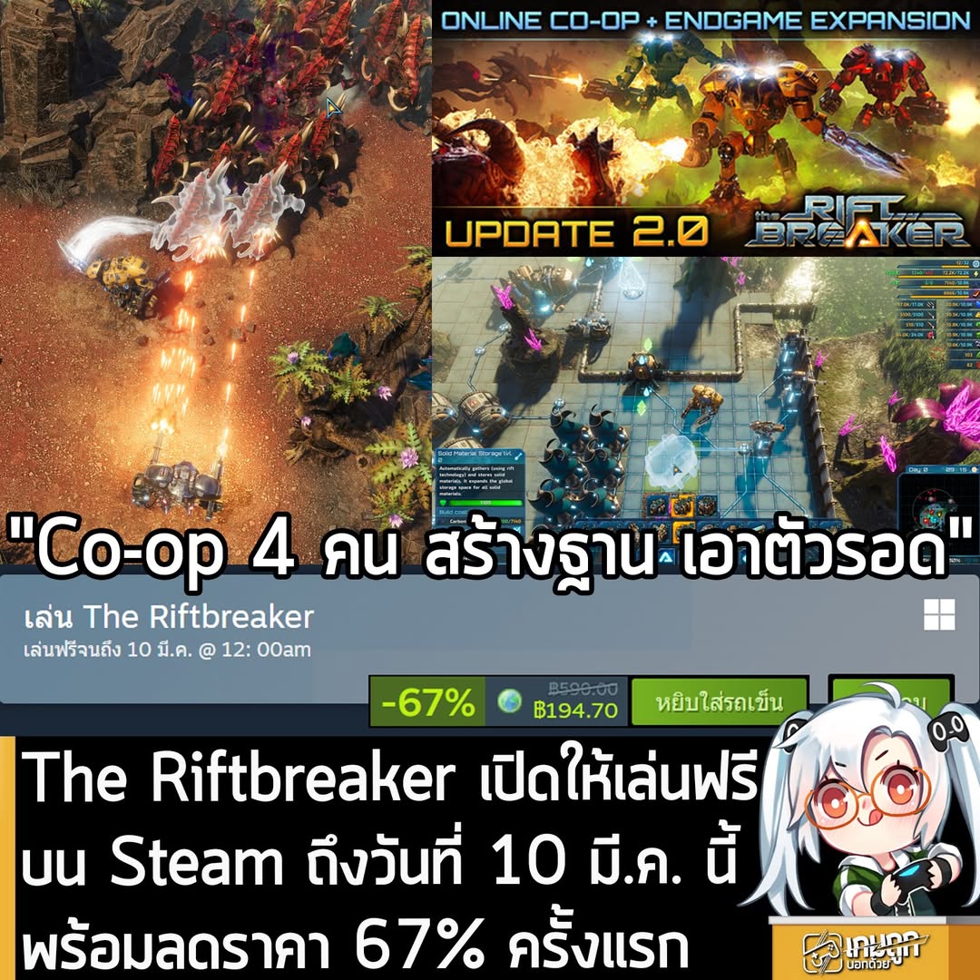 อันนี้เป็นเกมให้ทดลองเล่นฟรีแบบจำกัดเวลา กับ The Riftbreaker ที่ตอนนี้กำลังเปิดให้เล่นฟรีบน Steam ถึงวันที่ 10 มี.ค. 2026 สำหรับผู้ที่สนใจสามารถเข้าไปรับมาเล่นอย่างเมามันได้ที่หน้าร้านค้า