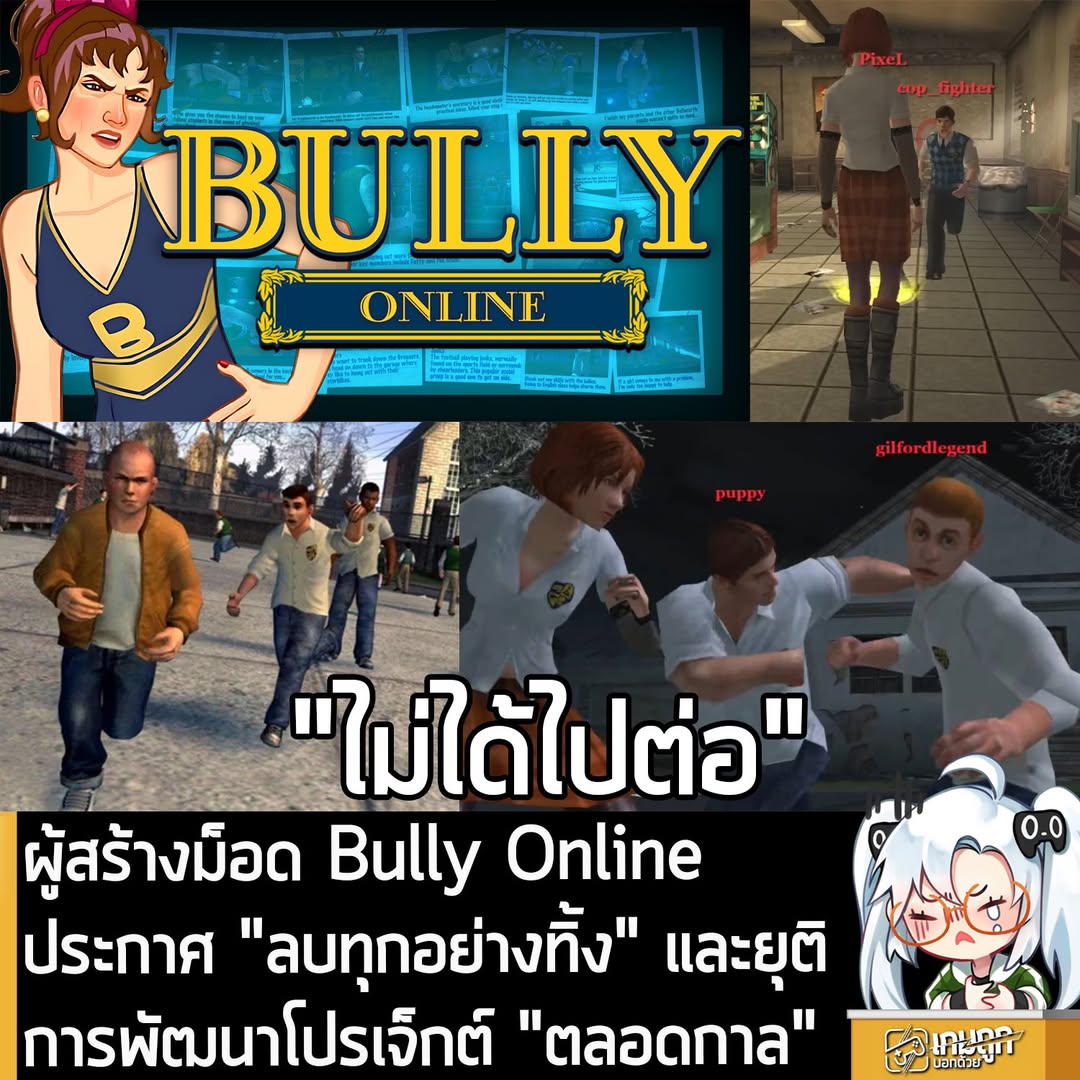 เป็นข่าวร้ายสำหรับชาวม็อด เมื่อทางผู้พัฒนา Bully Online หรือโปรเจ็กต์ม็อดเพิ่มโหมดเล่นโรลเพลย์ Multiplayer ออนไลน์สำหรับ Bully เกม Open World ในรั้วโรงเรียนประจำจาก Rockstar Games ประกาศยุติการพัฒนาม็อดนี้ พร้อมยุบโปรเจ็กต์ “ตลอดกาล” นั่นแปลว่า นอกจากจะปิดเซิร์ฟเวอร์แล้ว พวก Source Code ต่างๆ และบัญชีผู้เล่นจะโดนลบทิ้งทั้งหมด