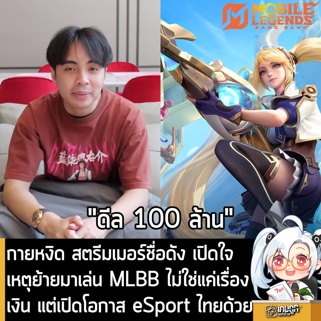 คุณกายหงิด สตรีมเมอร์และอินฟลูเอนเซอร์ชื่อดังของไทย ออกมาประกาศครั้งสำคัญ คือการย้ายค่ายจาก RoV สู่เกม Mobile Legends: Bang Bang หรือ MLBB อย่างเป็นทางการ พร้อมเผยเบื้องหลังดีลที่ทำให้เจ้าตัวต้องยอมเปลี่ยนเส้นทาง