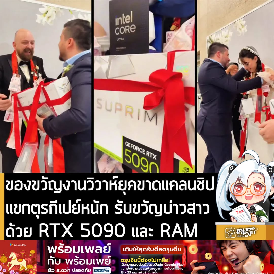 [News] ของขวัญวิวาห์ยุคขาดแคลนชิป แขกตุรกีเปย์หนัก รับขวัญบ่าวสาวด้วย RTX 5090 และมาลัย RAM . อันนี้เป็นไวรัลจากฝั่งตุรก…