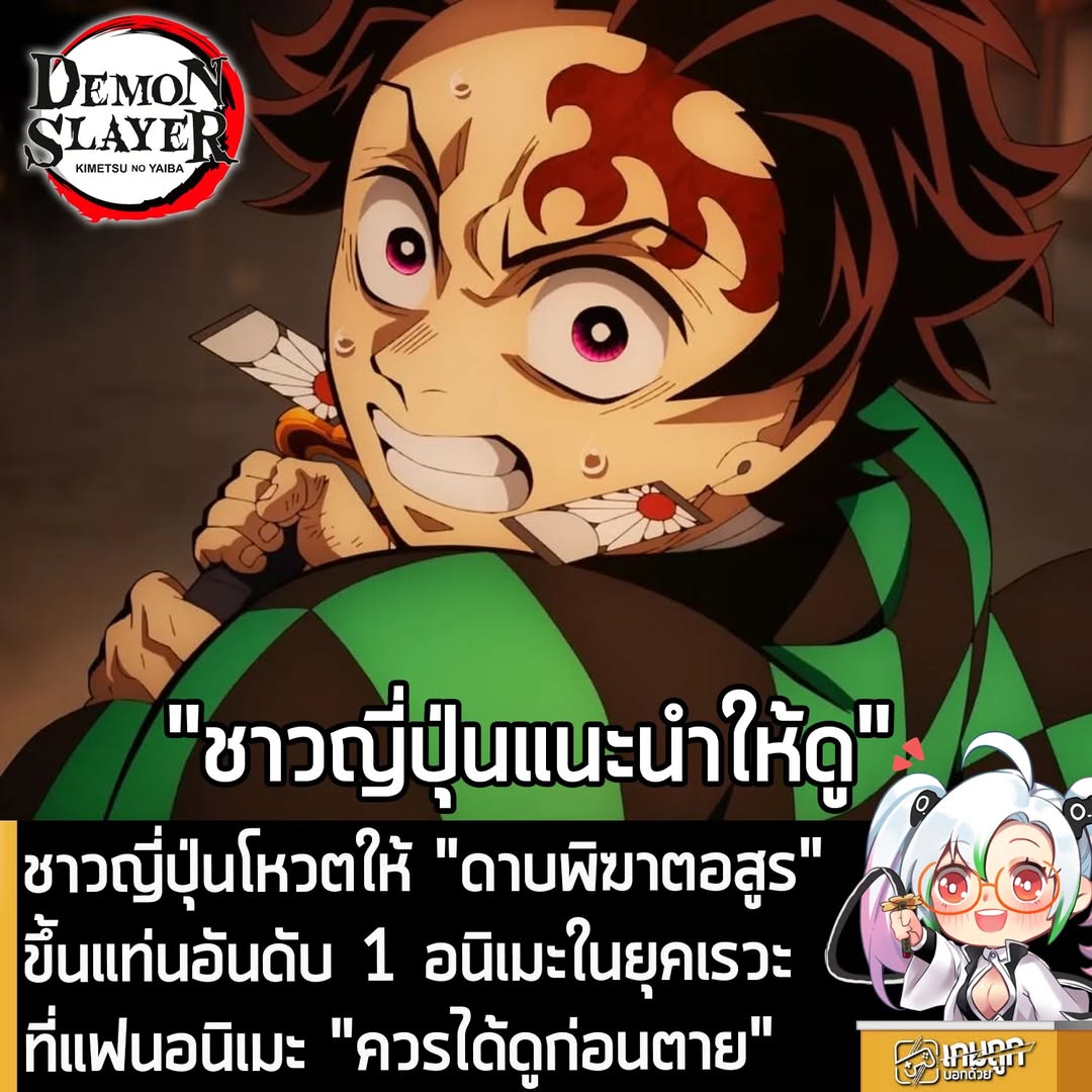 โดย Demon Slayer: Kimetsu no Yaiba หรือ “ดาบพิฆาตอสูร” ขึ้นแท่นอันดับ 1 อนิเมะยุคเรวะที่ชาวญี่ปุ่นแนะนำให้ดูก่อนตายมากที่สุด รองลงมาคือ The Apothecary Diaries (2023) หรือ “ตำรับปริศนา หมอยาแห่งวังหลัง” และ Oshi no Ko (2023) หรือ “เกิดใหม่เป็นลูกโอชิ”