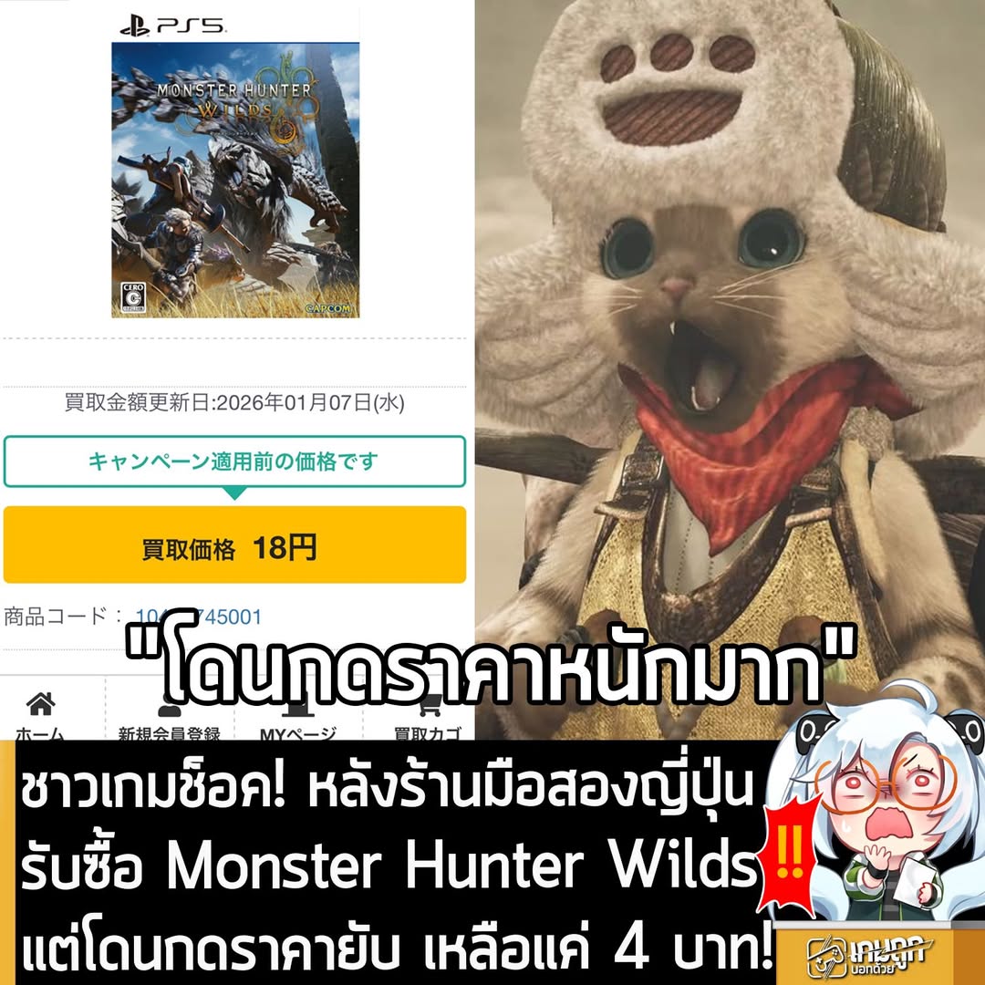 สำหรับซีรีส์เกมขวัญใจชาวเกมญี่ปุ่นอย่าง Monster Hunter การได้เห็น Monster Hunter Wilds รับซื้อเพียง 3 – 4 บาท ถือว่าเป็นเรื่องที่น่าใจหาย ย้อนกลับไปเมื่อเดือน พ.ค. 2025 ซึ่งเป็นช่วงเวลา 3 เดือนหลังเกมวางจำหน่าย แผ่นเกมมือสองในร้านค้าญี่ปุ่นบางแห่ง ก็นำ Monster Hunter Wilds มาขายโดยลดราคาเกือบครึ่งจากราคาเปิดตัว