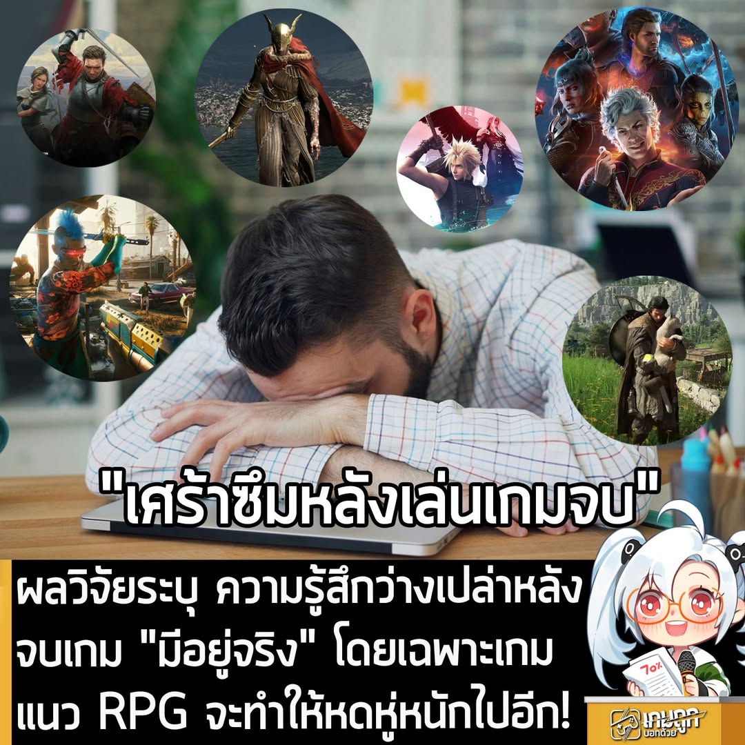 จากรายงานของ News Medical เปิดเผยถึงผลวิจัยล่าสุดที่ลงในวารสารนานาชาติ Current Psychology ที่บ่งชี้ว่า ความรู้สึกเศร้าลึกๆ โดยไม่ทราบสาเหตุที่เกิดขึ้นทันที หลังจากเล่นเกม RPG จบ “มีอยู่จริง” โดยมีชื่อว่า Post-game Depression หรือ “ภาวะซึมเศร้าหลังเล่นเกมจบ”