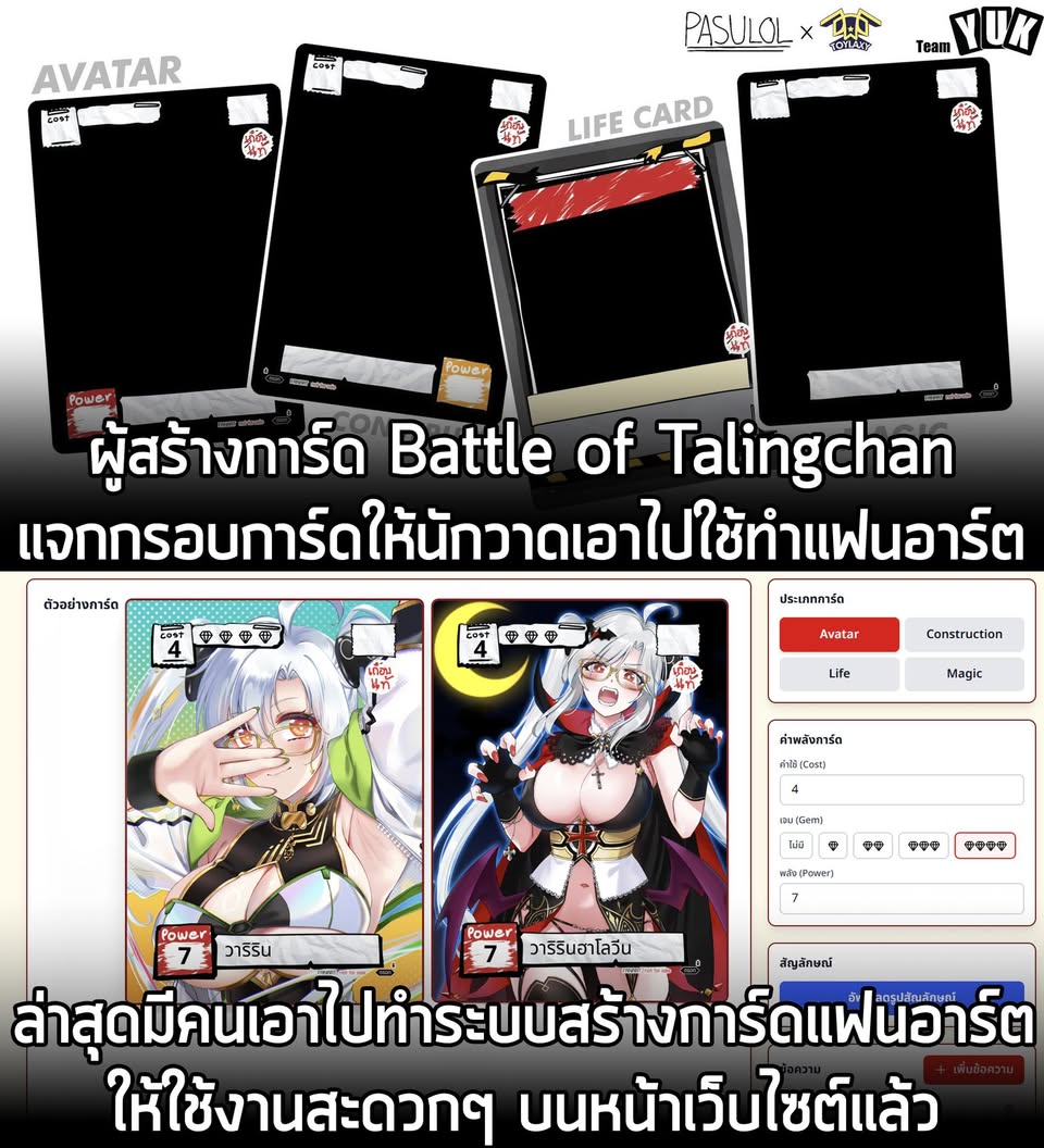 [News] ผู้สร้างการ์ด Battle of Talingchan แจกกรอบการ์ดให้นักวาดเอาไปใช้ทำแฟนอาร์ต และมีคนเอาไปทำระบบสร้างการ์ดบนเว็บไซต์แล้ว