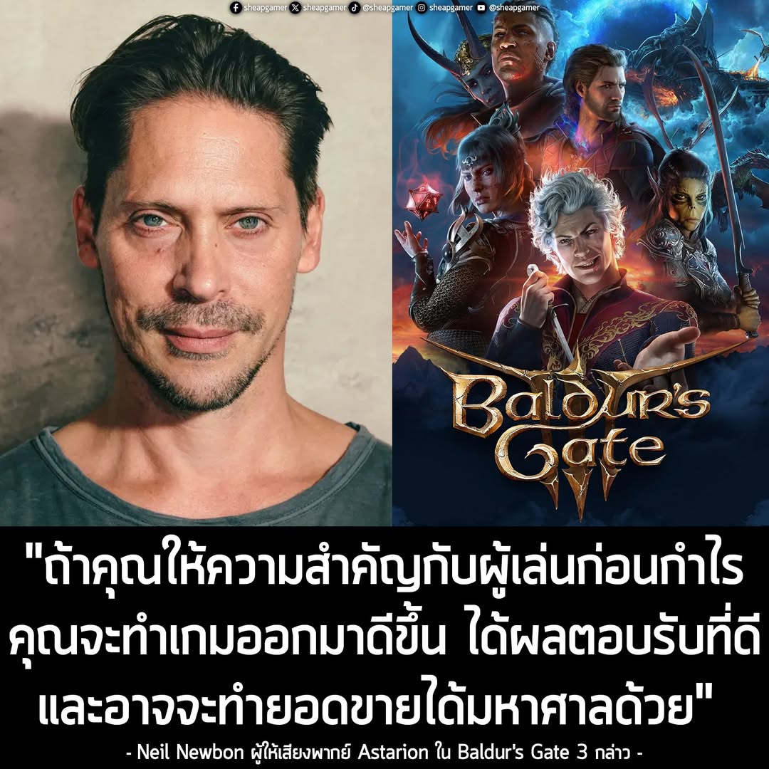 คุณ Neil Newbon นักแสดงผู้ให้เสียงพากย์ Astarion ตัวละครขวัญใจผู้เล่น Baldur’s Gate 3 เชื่อว่า หัวใจสำคัญของความสำเร็จอย่างล้นหลาม ด้วยยอดขายหลายสิบล้านชุดและรางวัลเกมแห่งปีมากมาย มาจากการที่ Larian Studios ผู้พัฒนาเกมเลือกที่จะให้ “ผู้เล่นมาก่อนผลกำไร”