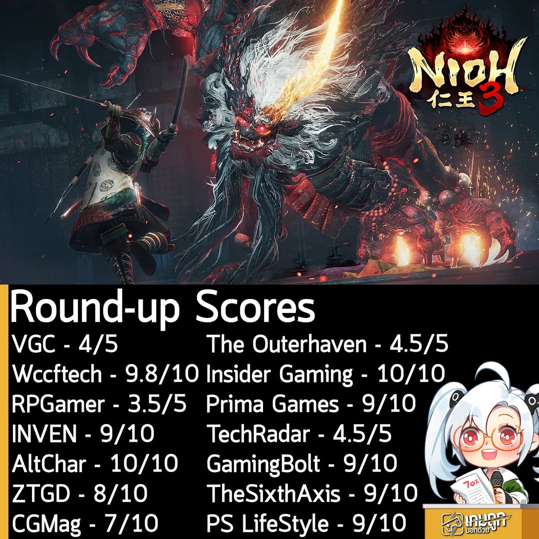 ในตอนนี้คะแนนรอบสื่อของ Nioh 3 ภาคหลักลำดับที่ 3 ของเกมแอ็กชันผจญภัย Souls-like ดาร์กแฟนตาซีในยุคศักดินาของญี่ปุ่น ก็ออกมาแล้วนะครัช ดังที่เห็นในภาพเลย คะแนนเรียกได้ว่าดีมากๆ
