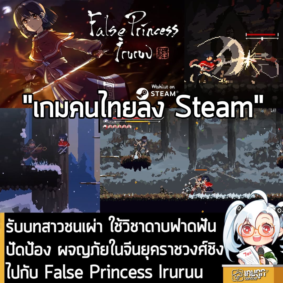 Pocchi Studio สตูดิโอพัฒนาเกมชาวไทย เปิดตัว False Princess Iruruu เกมแอ็กชันมุมมองด้านข้างกราฟิกพิกเซล ที่มาพร้อมระบบการต่อสู้สไตล์ Sekiro ที่เน้นจังหวะและความรวดเร็ว โดยคุณจะรับบทเป็น Iruruu เด็กสาวจากทุ่งหญ้าทางตะวันตกของจีน ที่ต้องออกเดินทางฝ่าอันตรายเพื่อตอบรับคำสั่งเรียกตัวจากสำนักราชวัง การเดินทางครั้งนี้ไม่ใช่แค่เรื่องของโชคชะตา แต่คือการวัดใจในทุกจังหวะดาบ ใช้การปัดป้อง ยิ่งเสี่ยงมากก็ได้มาก