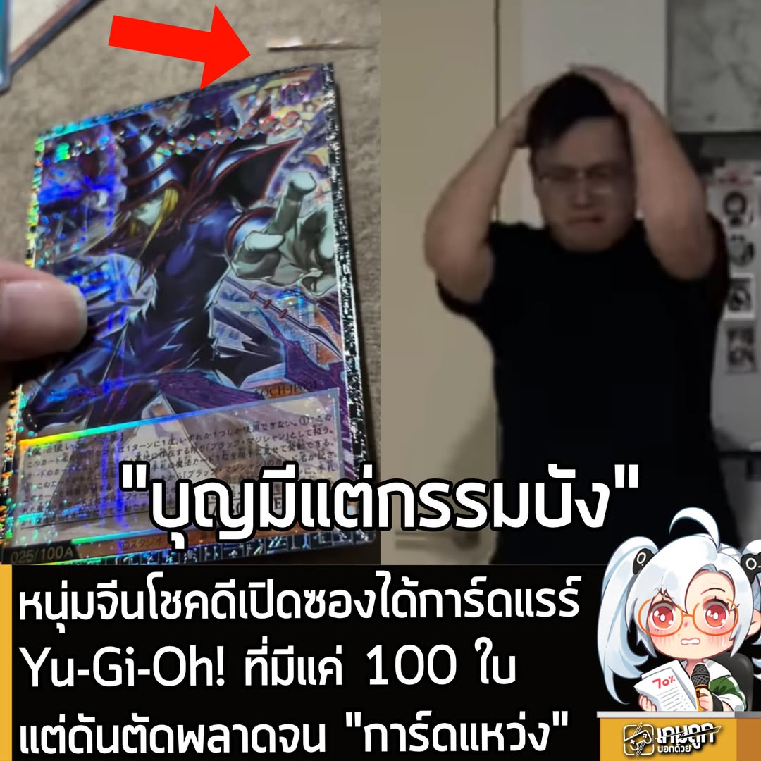 แต่อนิจจา แม้สวรรค์ประทานโชคมาให้ แต่ดันลืมมอบ “สกิลการใช้กรรไกร” ให้พ่อหนุ่มท่านนี้มาด้วย เพราะจากวิดีโอ จะเห็นว่าพ่อหนุ่มท่านนี้กำลังเดินร้องไห้ไปมาด้วยความเสียดาย เพราะแทนที่จะได้ฉลองความรวย ภาพก็ตัดมาที่การ์ด แสดงให้เห็นว่าพี่แกดันใช้กรรไกรพลาดท่าไป ตัดเข้าที่ขอบการ์ดเต็มๆ จนแหว่ง ซึ่งการทำแบบนี้จะกลายเป็นการสร้างตำหนิที่ทำให้มูลค่าการ์ดร่วงกราวรูดได้ทันที