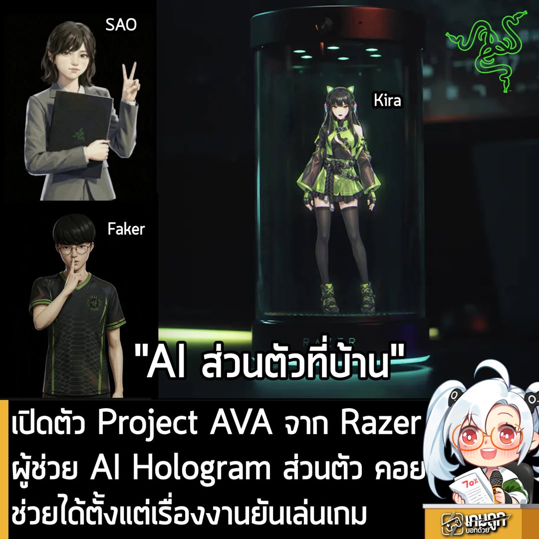 โดย Project AVA สามารถเลือกอวาตาร์ได้ทั้งหมดได้แก่ Ava ที่เป็นค่าตั้งต้น Kira และ Zane ที่เป็นตัวละครของ Razer เอง แต่ที่เจ๋งคือ คุณสามารถมี Faker สุดยอดตำนานอีสปอร์ต และคุณ Araki Saori หรือ SAO สาวออฟฟิศสุดมีม ไว้เป็นผู้ช่วยส่วนตัวบนโต๊ะได้ด้วย
