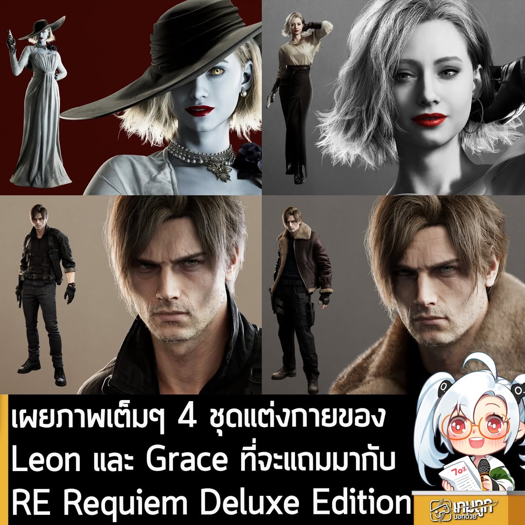 Capcom เปิดเผยภาพเต็มๆ ของ 4 ชุดแต่งกายเสริมของ Grace Ashcroft และ Leon S Kennedy จาก Resident Evil Requiem ภาคล่าสุดของเกมสยองขวัญเอาตัวรอดซีรีส์ผีชีวะ ที่จะแถมเข้ามาในตัวเกมแบบ Deluxe Edition