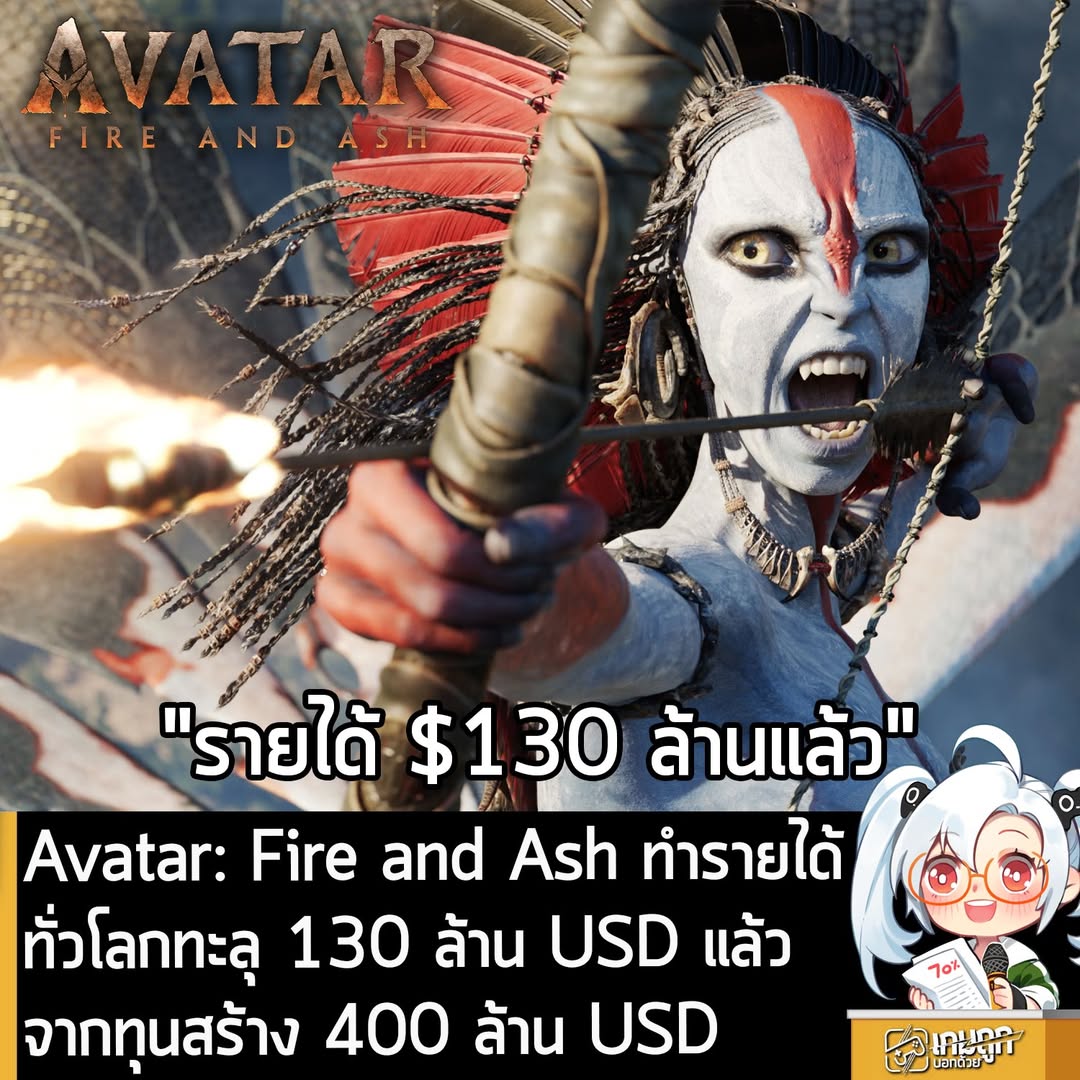 จากรายงานของ The Hollywood Handle ระบุว่า Avatar: Fire and Ash ภาคที่ 3 ของภาพยนตร์ชุด Avatar จากผู้กำกับ James Cameron ทำรายได้ทะลุ 130 ล้าน USD ทั่วโลก หลังเข้าฉายเมื่อวันที่ 17 ธ.ค. ที่ผ่านมา ในขณะที่ทุนสร้างอยู่ที่ 400 ล้าน USD