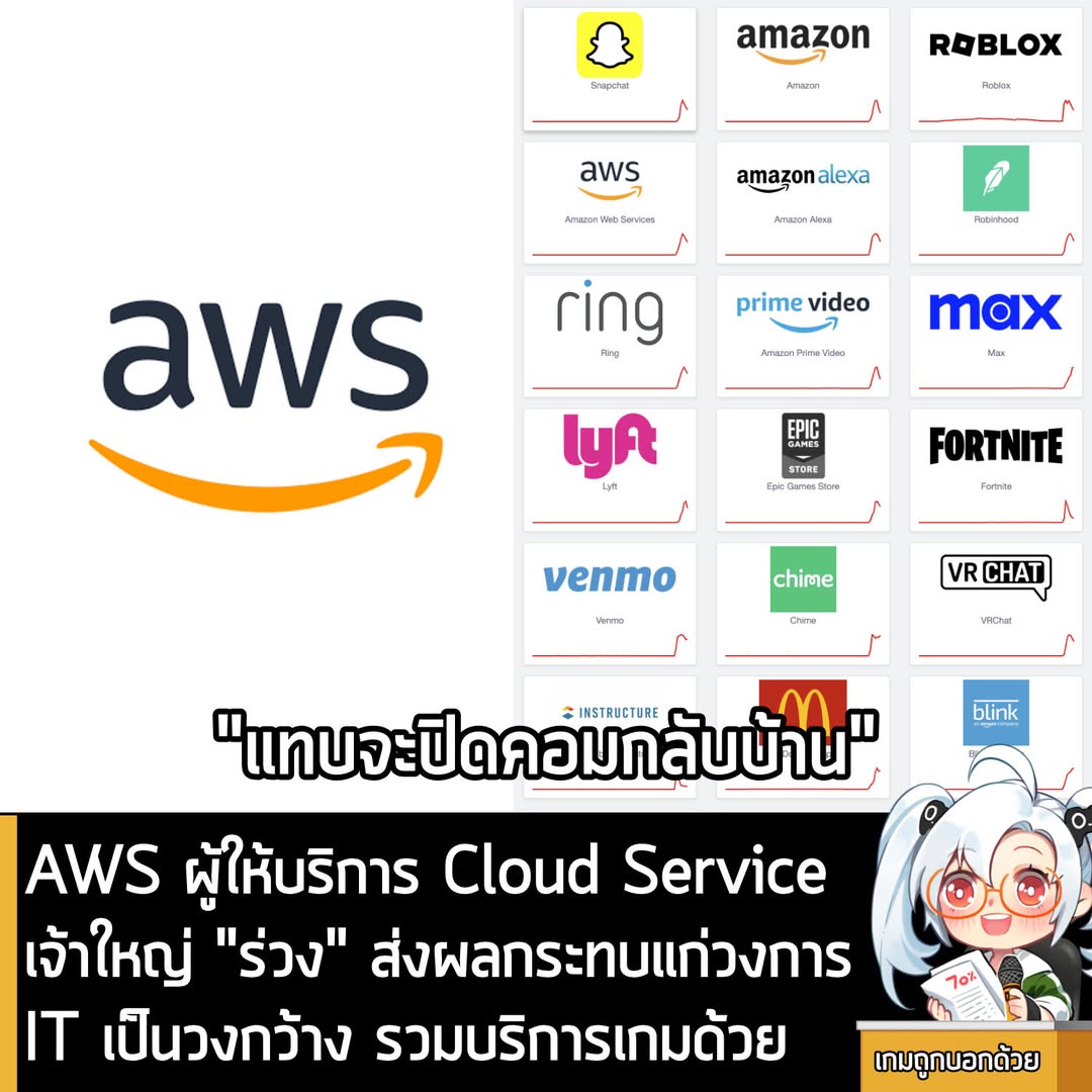 [News] AWS ผู้ให้บริการ Cloud Service เจ้าใหญ่ "ร่วง" ส่งผลกระทบแก่วงการ IT เป็นวงกว้าง รวมบริการเกมด้วย . ตอนนี้ AWS ผู…