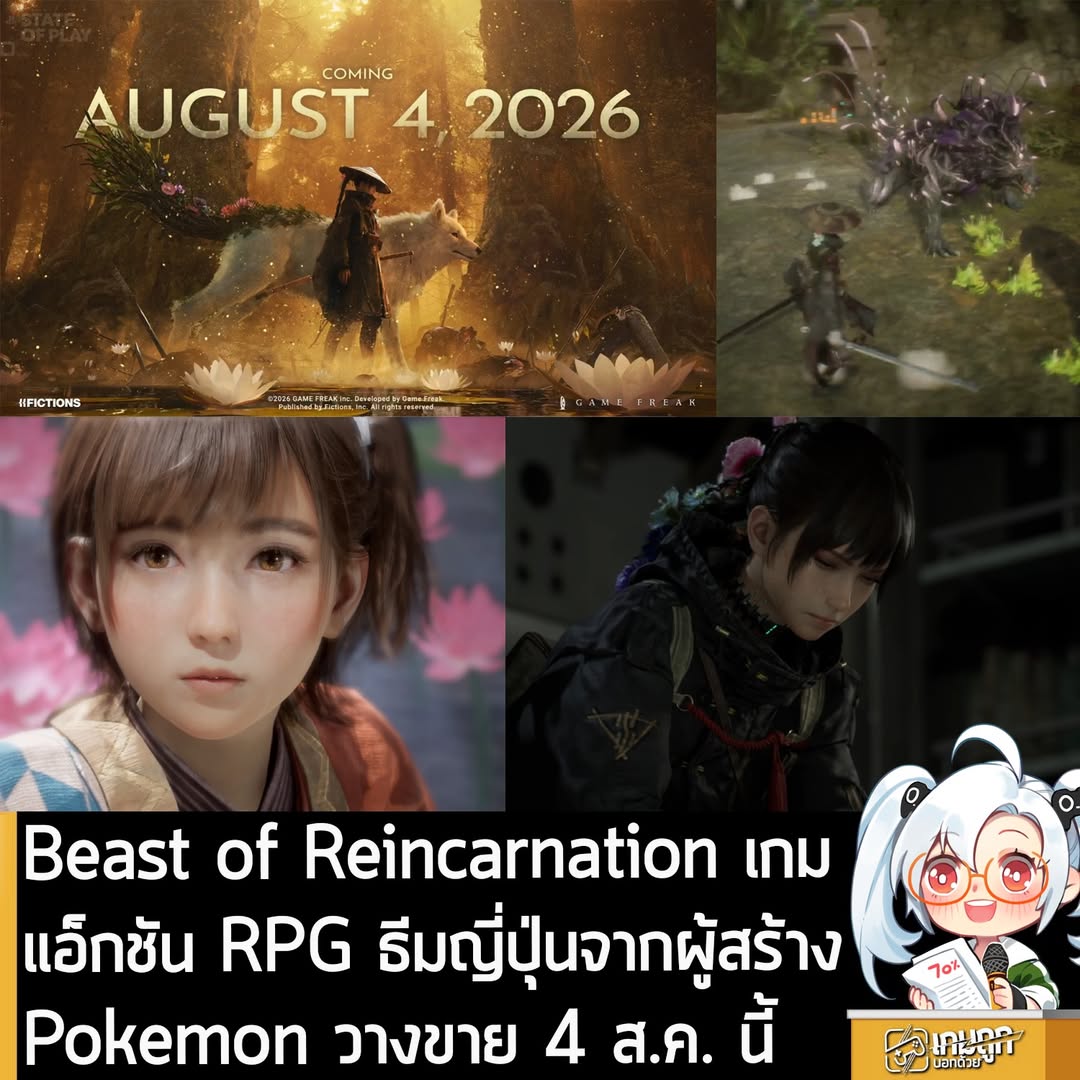 GAME FREAK สตูดิโอพัฒนาจากญี่ปุ่นที่หลายคนรู้จักดีในฐานะผู้สร้าง Pokémon ประกาศอย่างเป็นทางการว่า Beast of Reincarnation เกมแอ็กชัน RPG ที่เล่าเรื่องราวในโลกล่มสลายของญี่ปุ่นที่เต็มไปด้วยอสูรกาย และความหวังสุดท้ายอยู่ที่ Emma หญิงสาวนอกคอกผู้โดนต้องคำสาปให้เป็นผู้มีมลทิน และ Koo สุนัขคู่ใจ ที่จะต้องเอาตัวรอดในการเดินทางอันน่าสะพรึงและเปลี่ยนแปลงตลอดเวลา จะวางจำหน่ายในวันที่ 4 ส.ค. 2026 โดยตัวเกมจะลงให้กับทั้ง PS5, XBSX|S และ PC