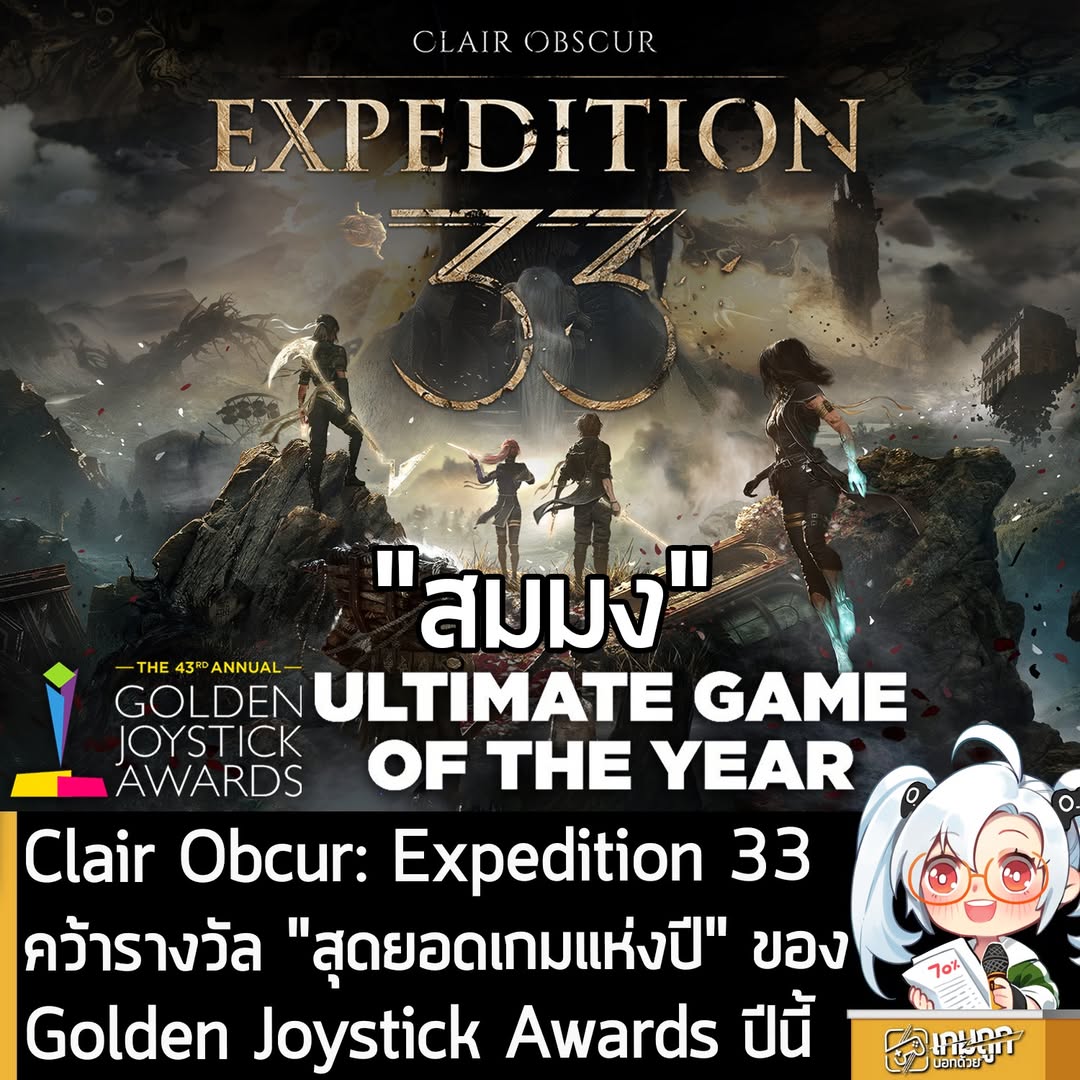 ทาง GamesRadar+ ผู้จัดงาน Golden Joystick Awards ครั้งที่ 43 หรืออีเวนต์มอบรางวัลเกมแห่งปีสาขาต่างๆ ประจำปีนี้ ประกาศว่า Clair Obcur: Expedition 33 เกม RPG แบบเทิร์นเบสกึ่งเรียลไทม์ในโลกแฟนตาซีที่ได้แรงบันดาลใจมาจากฝรั่งเศสในยุค Belle Époque จาก Sandfall Interactive สามารถคว้ารางวัล Ultimate Game of the Year Award หรือ “สุดยอดเกมแห่งปี” ประจำปีนี้ ไปครอบครองเป็นที่เรียบร้อยแล้ว