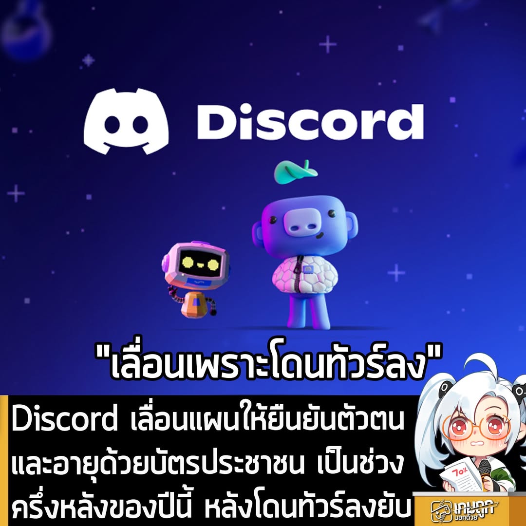 Discord ประกาศเลื่อนแผนการบังคับให้ผู้ใช้งานทุกคนต้อง “ยืนยันตัวตนด้วยบัตรประชาชนและการสแกนใบหน้า” เพื่อตรวจสอบว่าผู้ใช้งานมีอายุต่ำกว่า 16 ปี หรือไม่ และจะจำกัดเนื้อหาต่างๆ ให้เหมาะสมกับอายุของผู้ใช้งาน จากเดิม มี.ค. นี้ เป็นช่วงครึ่งหลังของปี 2026 แทน หลังจากโดนทัวร์ลงยับเยินมาเป็นสัปดาห์ จากผู้ใช้งานที่กังวลเรื่องข้อมูลส่วนตัวหลุด