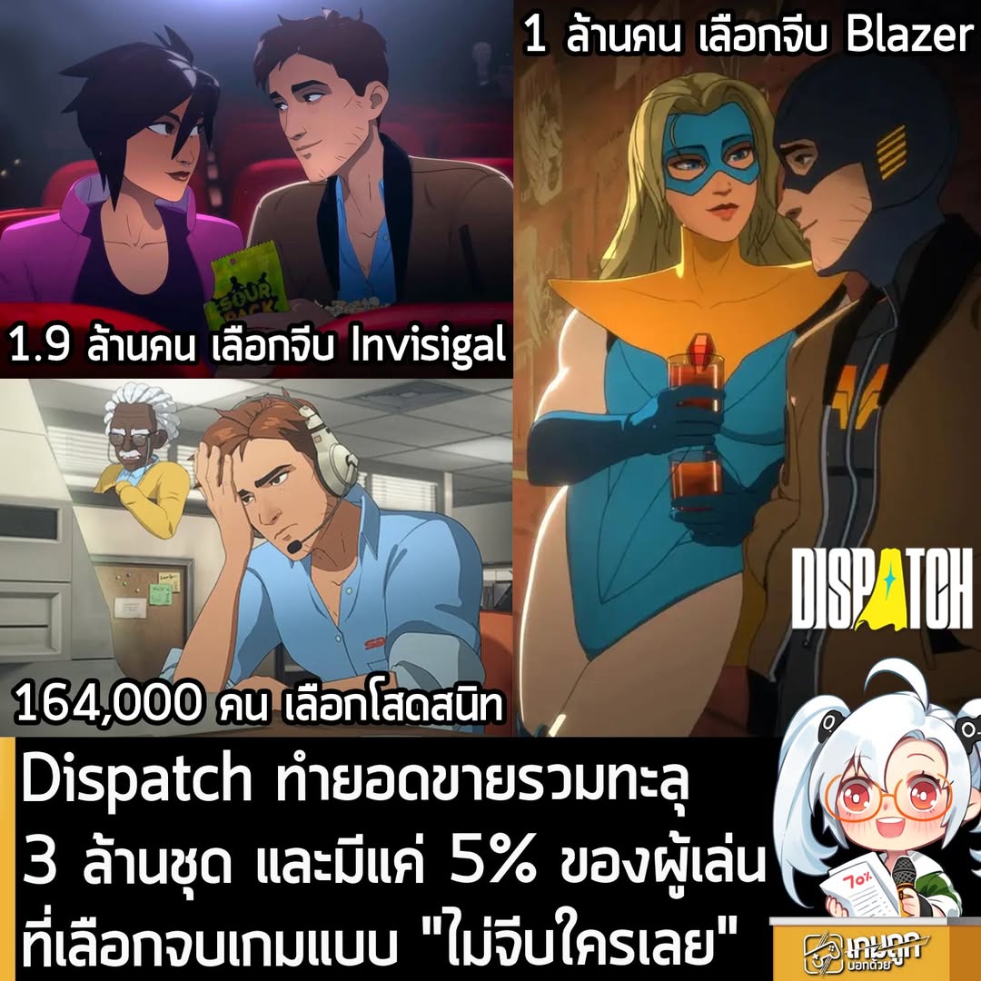 AdHoc Studios ผู้พัฒนา Dispatch เกมผจญภัยขับเคลื่อนด้วยเนื้อเรื่องที่ให้ผู้เล่นรับบทเป็น Robert เจ้าหน้าที่ประสานงานและสั่งการเหล่าฮีโร่ออกทำภารกิจ ออกมาเปิดเผยว่า ตัวเกมสามารถทำยอดขายได้แล้วมากกว่า 3 ล้านชุด หลังวางจำหน่ายเมื่อวันที่ 22 ต.ค. 2025 จนเรียกได้ว่า นี่คือเกมเปิดตัวของสตูดิโอที่ประสบความสำเร็จเกินคาดเลยทีเดียว