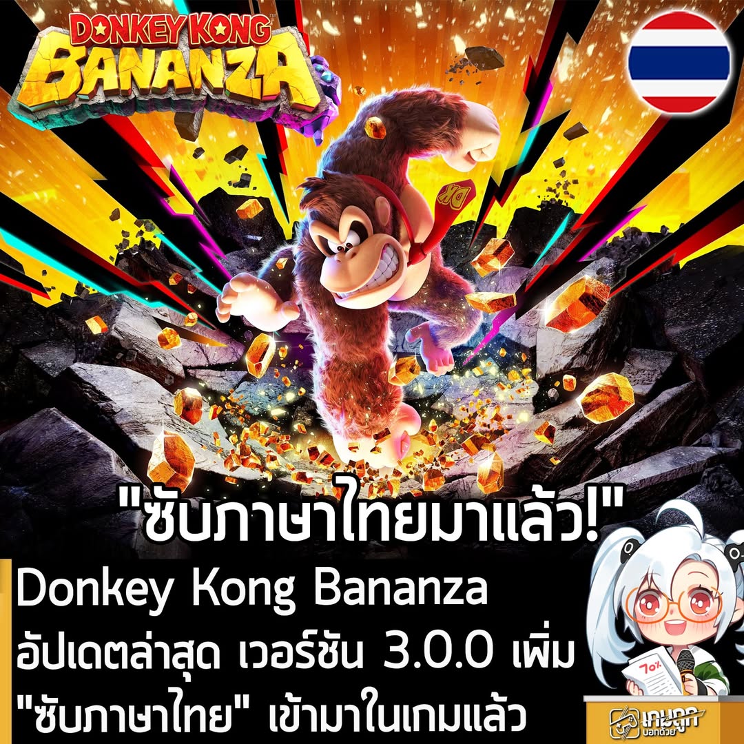 ในตอนนี้ Donkey Kong Bananza ภาคล่าสุดของเกมซีรีส์ Donkey Kong ก็อัปเดตเวอร์ชัน 3.0.0 ที่เป็นการเพิ่ม “ซับไตเติลภาษาไทย” เข้ามาในเกมแล้ว โดยผู้ที่มีตัวเกมอยู่แล้ว ก็อัปเดตเกม จากนั้นก็ไปตั้งค่าเปลี่ยนเป็นภาษาไทยได้เลย