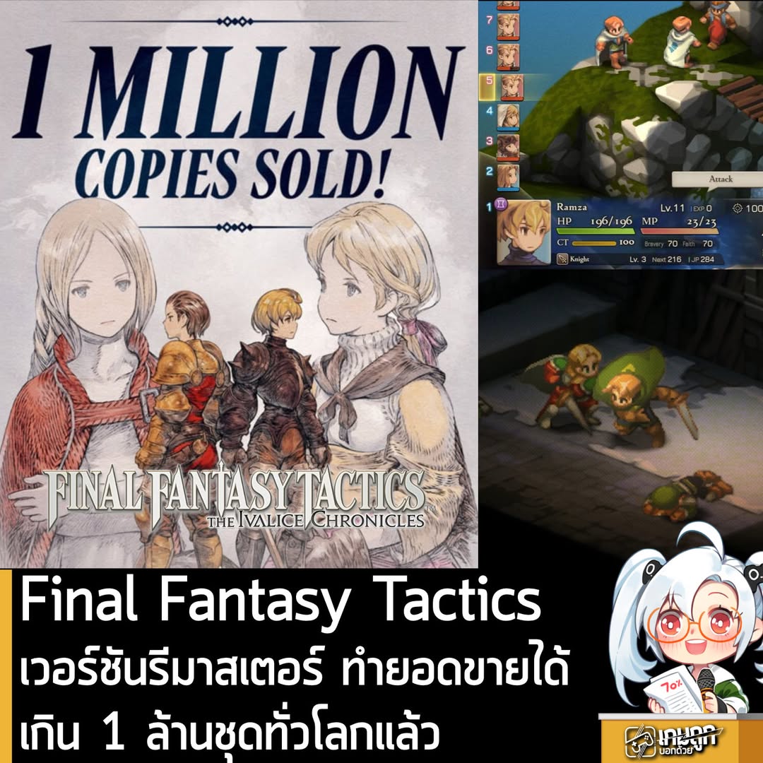 อ้างอิงจากงานล่าสุดจาก Square Enix เกม Final Fantasy Tactics: The Ivalice Chronicles สามารถทำยอดจำหน่ายและยอดขายแบบดิจิทัล พุ่งทะลุ 1 ล้านชุดเป็นที่เรียบร้อยแล้วนับตั้งแต่เปิดตัวจนถึงวันที่ 31 ธ.ค. ที่ผ่านมา