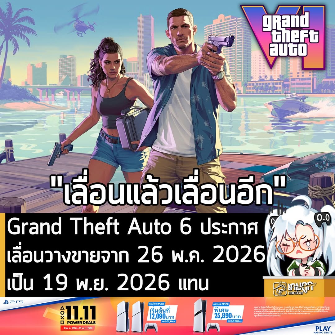 ข่าวร้ายรับเช้าวันนี้สำหรับแฟนๆ เมื่อทาง Rockstar Games ประกาศเลื่อนวางจำหน่าย Grand Theft Auto 6 ภาคล่าสุดของซีรีส์เกมแอ็กชันผจญภัยในโลกอาชญากรรม จากเดิม 26 พ.ค. 2026 เป็น 19 พ.ย. 2026 โดยจะลงให้กับ PS5 และ XBSX|S