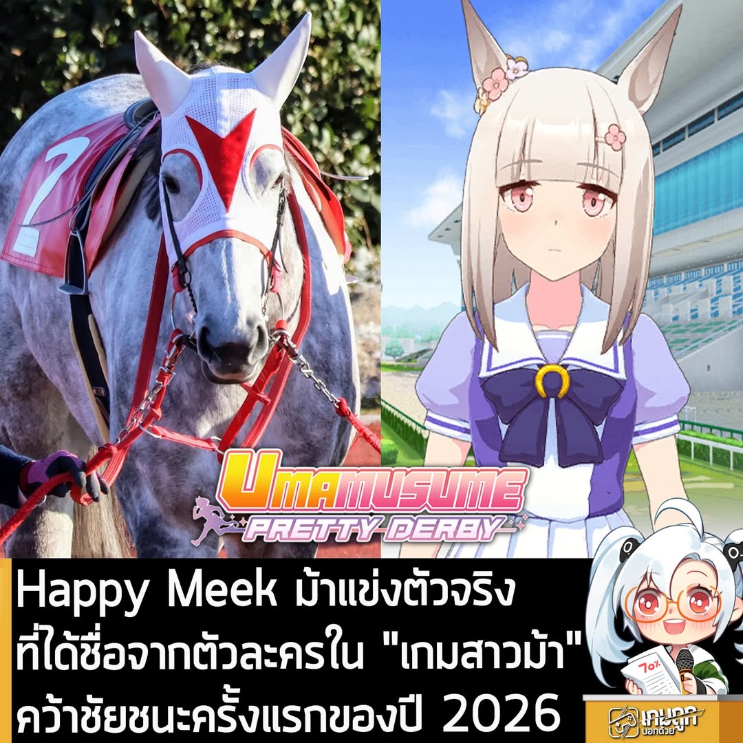 หลังจากที่กลับมาลงสนามแข่งขันอีกครั้ง Happy Meek ม้าแข่งตัวจริงที่ได้ชื่อมาจากตัวละครใน Umamusume: Pretty Derby หรือเกมมือถือวิ่งแข่งสาวม้าจาก Cygames ก็สามารถคว้าชัยชนะจากการแข่งขัน ณ สนามม้า Nagoya Racecourse เมื่อวันที่ 1 ม.ค. ที่ผ่านมา