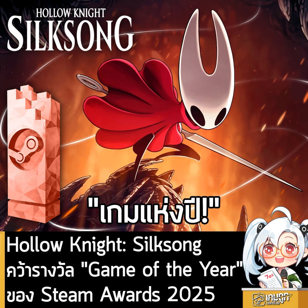 หลังจากที่เปิดให้โหวตมา ตั้งแต่ช่วงต้นเทศกาล Winter Sale ที่ผ่านมา ล่าสุดทาง Steam ก็ประกาศผลรางวัล Steam Awards หรืองานรางวัล Steam ประจำปีนี้ ที่จะตัดสินผลจากการโหวตของผู้เล่นบน Steam แบบ 100% แล้ว และรางวัล Game of the Year หรือ “เกมแห่งปี” ก็ตกเป็นของ Hollow Knight: Silksong ภาคต่อของเกม Metroidvania ในโลกของแมลงจาก Team Cherry เป็นที่เรียบร้อยแล้ว