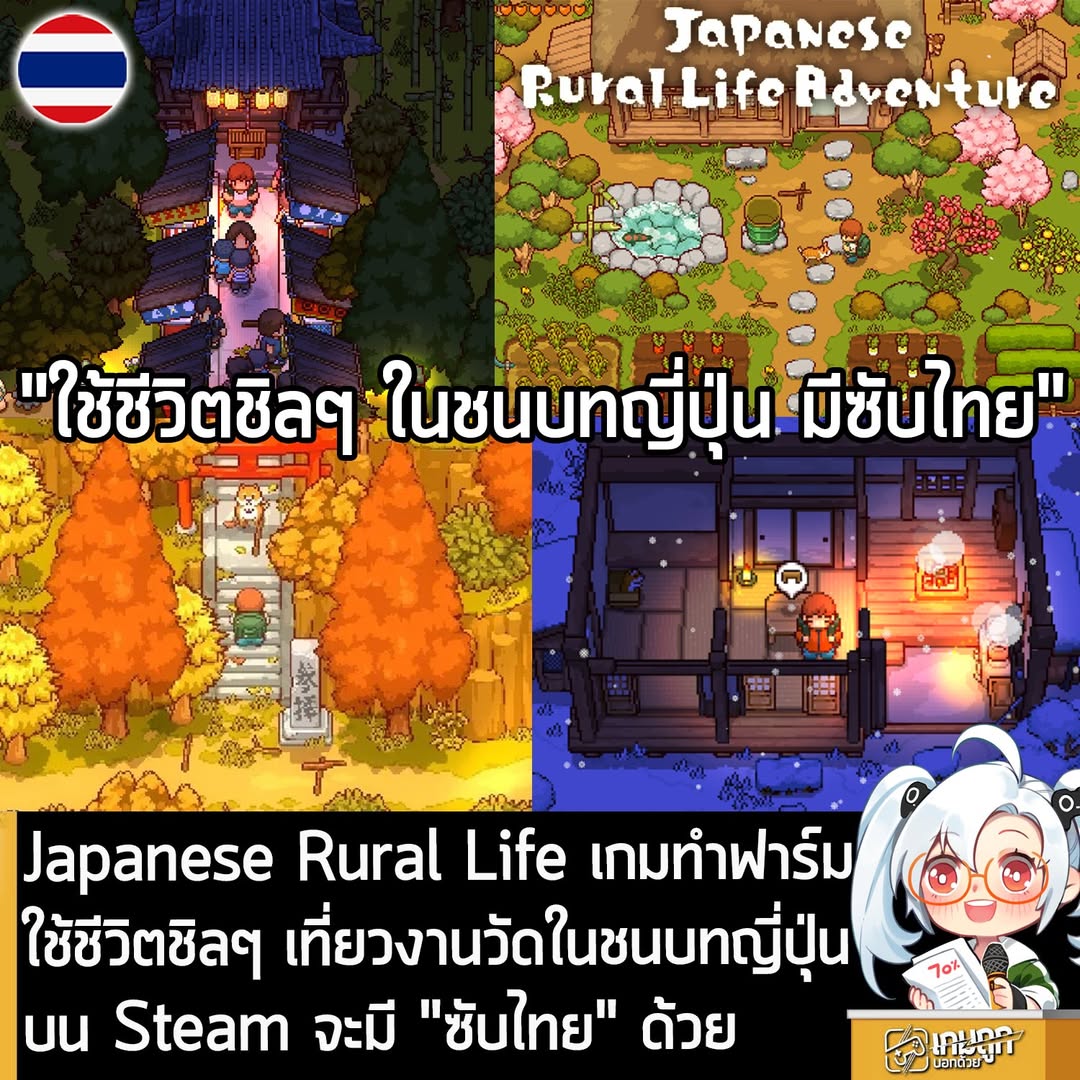หลังจากที่ประกาศลง Switch และ Steam ไปเมื่อไม่นานมานี้ ล่าสุดทาง GAME START LLC ผู้พัฒนา Japanese Rural Life เกมจำลองการใช้ชีวิตในชนบทของญี่ปุ่นในกราฟิกพิกเซล ก็อัปเดตหน้าร้านค้า Steam ที่เป็นการยืนยันว่า ตัวเกมจะมี “ซับไตเติลภาษาไทย” เช่นเดียวกับบนมือถือ (ซึ่งคาดว่าตัวเกมบน Switch ก็จะมีซับไทยด้วยเช่นกัน)