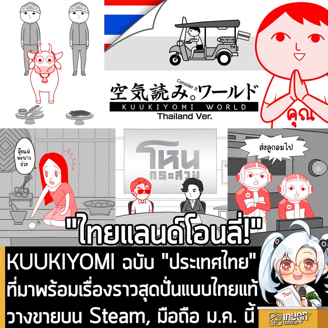 Urnique Studio สตูดิโอนักพัฒนาชาวไทย ผู้สร้าง Timelie และ Slap ‘em UP! ประกาศอย่างเป็นทางการว่า KUUKIYOMI: Consider It World เวอร์ชัน “ประเทศไทย” ที่เป็นความร่วมมือกับ Kerjasamaekonomiinternasional-Gaya กำลังจะวางจำหน่ายบน PC ผ่านทางระบบ Steam และมือถือ ทั้ง iOS และแอนดรอยหุ่นเขียว ในเดือน ม.ค. 2026