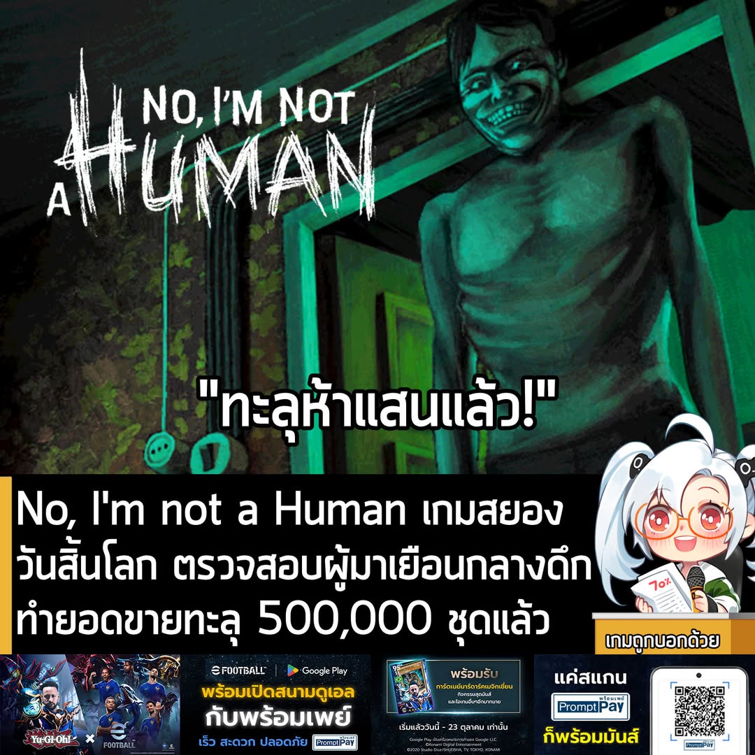 No I’m Not a Human เกมสยองขวัญกึ่งปริศนาที่ให้คุณอยู่ในหลุมหลบภัยวันสิ้นโลกที่ต้องค้นหาว่า คนที่มาเคาะประตูขอความช่วยเหลือ ใครที่สมควรช่วย และ “ใครที่ไม่ใช่มนุษย์” ของทาง Trioskaz ที่วางจำหน่ายแล้ว เมื่อเดือนที่ผ่านมา และจัดจำหน่ายโดย Critical Reflex ผู้จัดจำหน่ายเกมอินดี้ ก็ได้ประกาศข่าวดีว่า ตอนนี้เกมทำยอดขายทะลุ 5 แสนชุดเรียบร้อยแล้ว