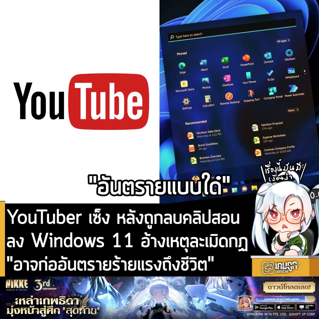 [News] Pembuat Konten Video เซ็ง หลังถูกลบคลิปสอนลง Windows 11 อ้างเหตุละเมิดกฏ "อาจก่ออันตรายร้ายแรงถึงชีวิต" . กลายเป็นกรณีงงๆ หลั…