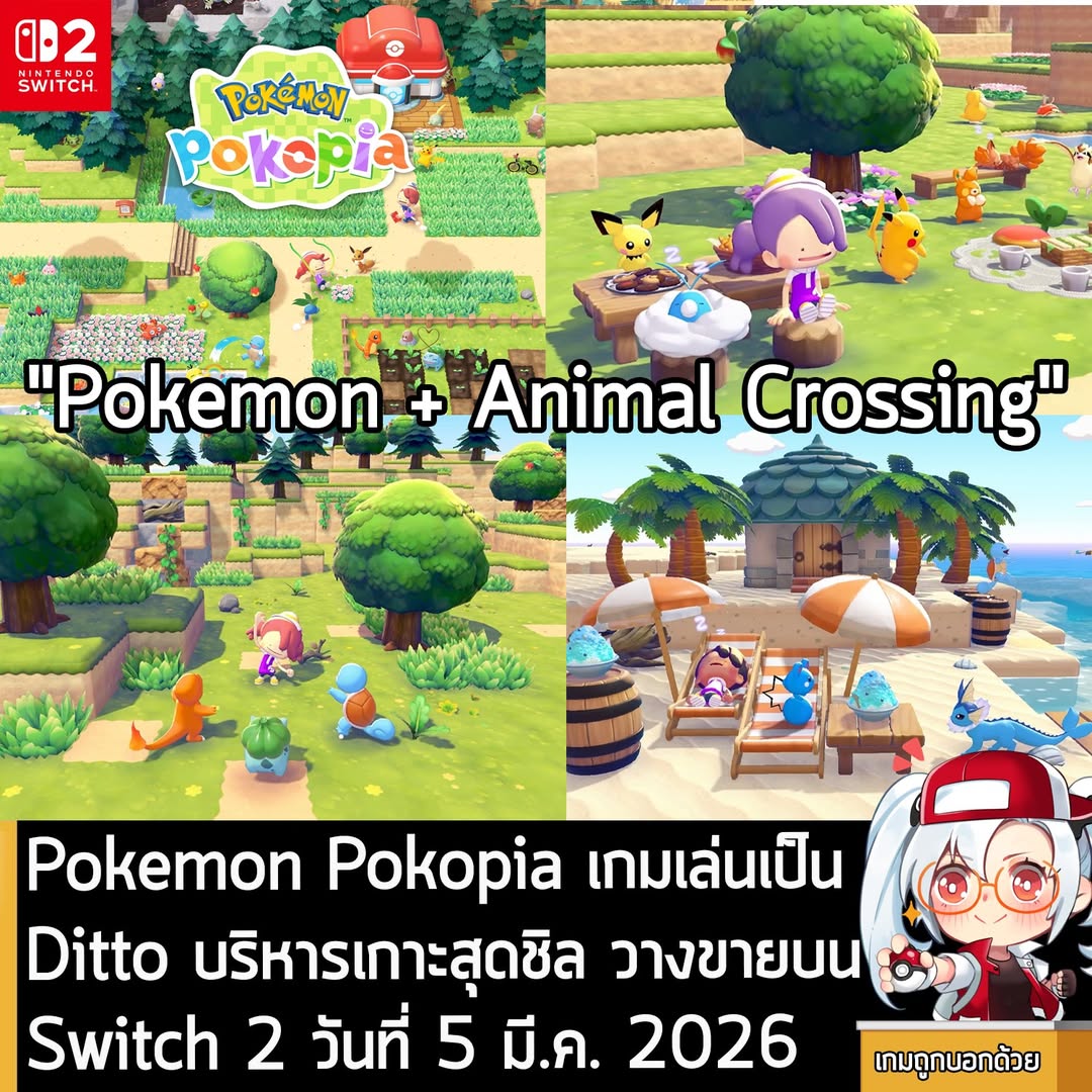 The Pokemon Company, Game Freak และ Koei Tecmo ร่วมกันประกาศว่า Pokemon Pokopia เกมภาคสปินออฟของ Pokemon ที่ให้คุณรับบทเป็น Ditto ที่แปลงร่างเป็นมนุษย์ได้ พบปะเหล่า Pokemon ใหม่ๆ เรียนรู้พลังจาก Pokemon ต่างๆ และพัฒนาเกาะสุดชิล กำลังจะวางจำหน่ายบน Nintendo Switch 2 ในวันที่ 5 มี.ค. 2026