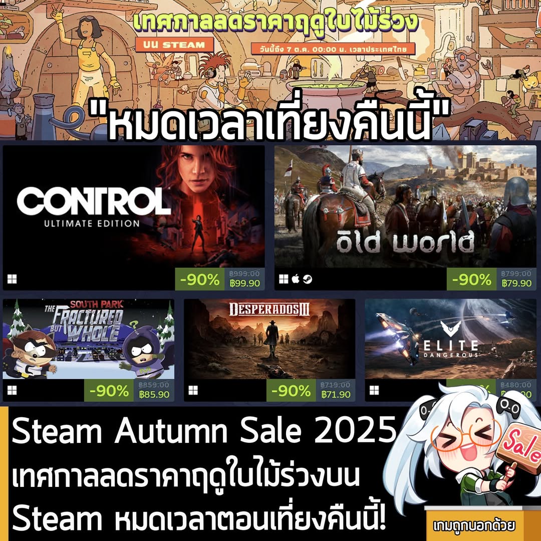 [News] Steam Autumn Sale 2025 เทศกาลลดราคาฤดูใบไม้ร่วงบน Steam หมดเวลาตอนเที่ยงคืนนี้! . ในตอนนี้เรามาถึงโค้งสุดท้ายของ…