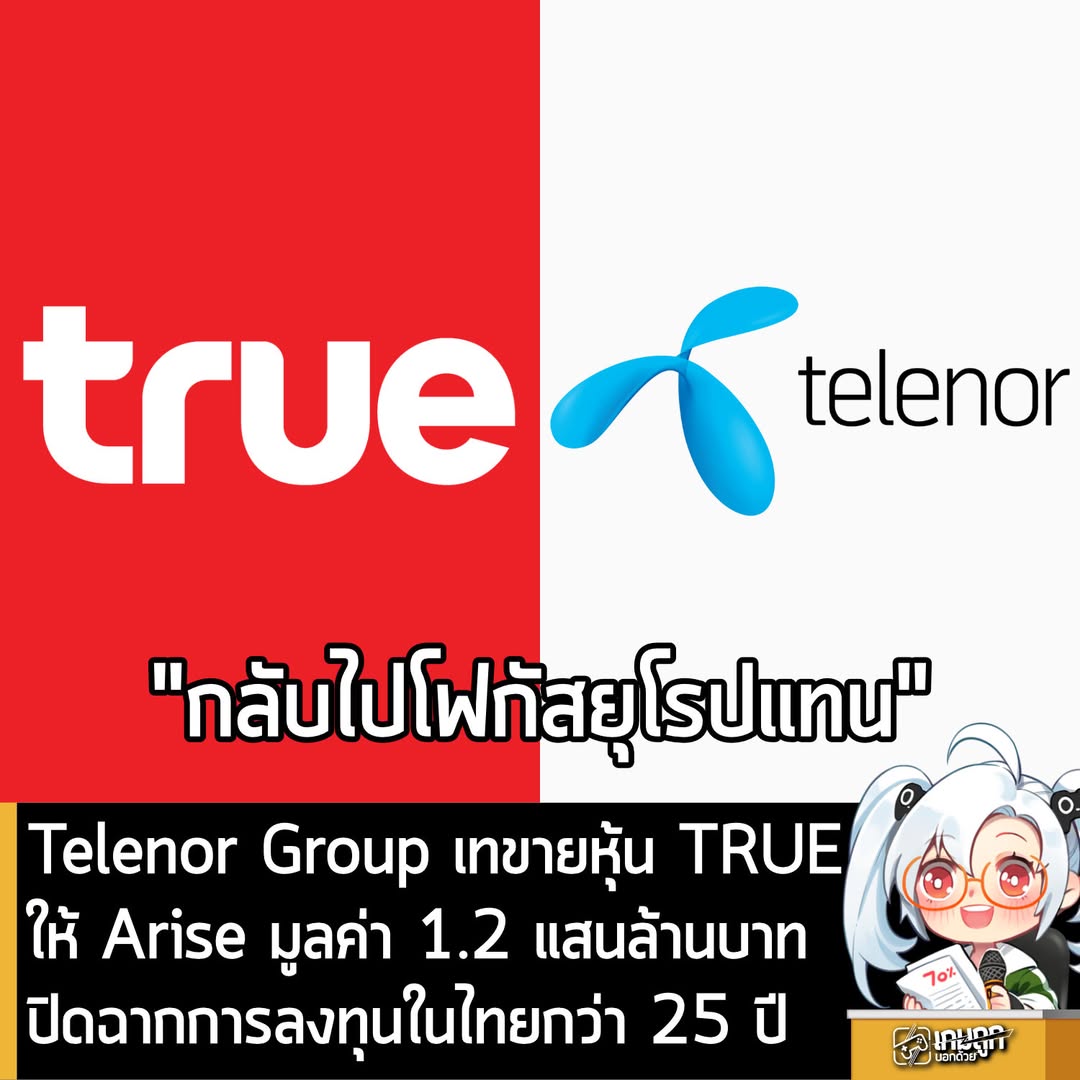 [News] Telenor Group เทขายหุ้น TRUE ให้ Arise มูลค่า 1.2 แสนล้านบาทปิดฉากการลงทุนในไทยกว่า 25 ปี . Telenor Group ยักษ์ให…