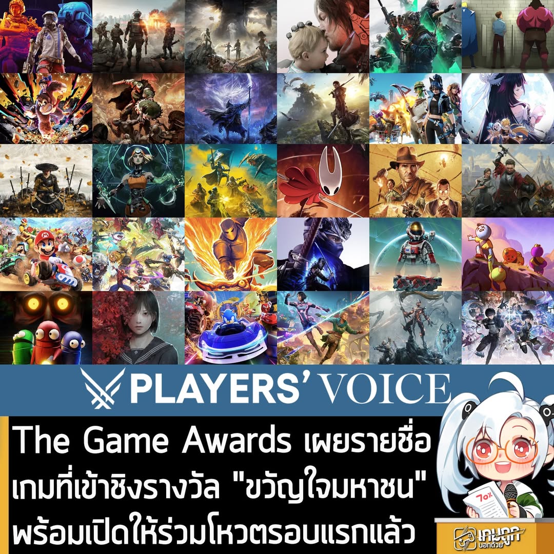 ทาง The Game Awards 2025 หรืองานประกาศรางวัล “เกมแห่งปี” ในสาขาต่างๆ ประจำปีนี้ เริ่มต้นเปิดให้ผู้เล่นทั่วไปสามารถร่วมโหวตรางวัล Players’ Voice หรือ “รางวัลขวัญใจมหาชน” ซึ่งเป็นรางวัลที่ตัดสินจากการโหวตจากผู้เล่นแบบ 100% แล้ว