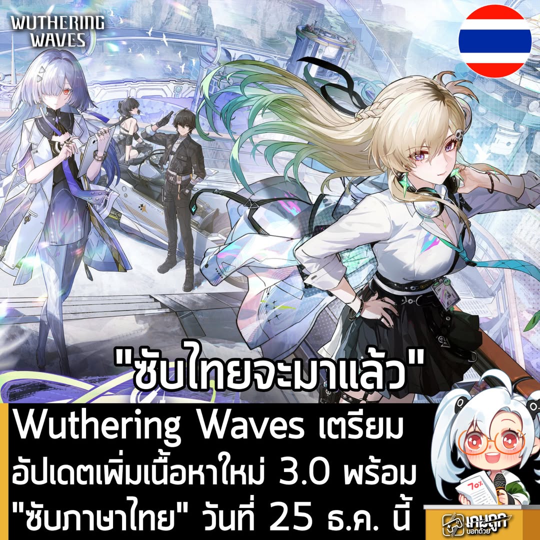 ล่าสุดทางเพจ Wuthering Waves – Unofficial Thailand พบเจอป้ายโฆษณาของเกมที่ Siam Square One ที่มีการระบุอย่างชัดเจนว่า อัปเดต 3.0 ในวันที่ 25 ธ.ค. นี้ นอกเหนือจากจะเพิ่มเนื้อหาคอนเทนต์ใหม่ๆ แล้ว จะมี “ซับไตเติลภาษาไทย” ที่แฟนๆ รอคอยมานาน เพิ่มมากับอัปเดตนี้ด้วย