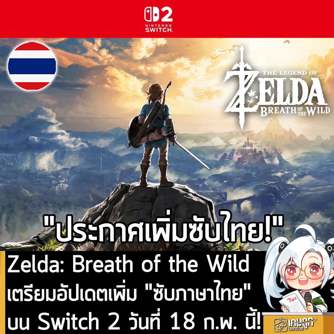 [News] Zelda: Breath of the Wild เตรียมอัปเดตเพิ่ม "ซับภาษาไทย" บน Switch 2 วันที่ 18 ก.พ. นี้! . Nintendo ประกาศอย่างเป…