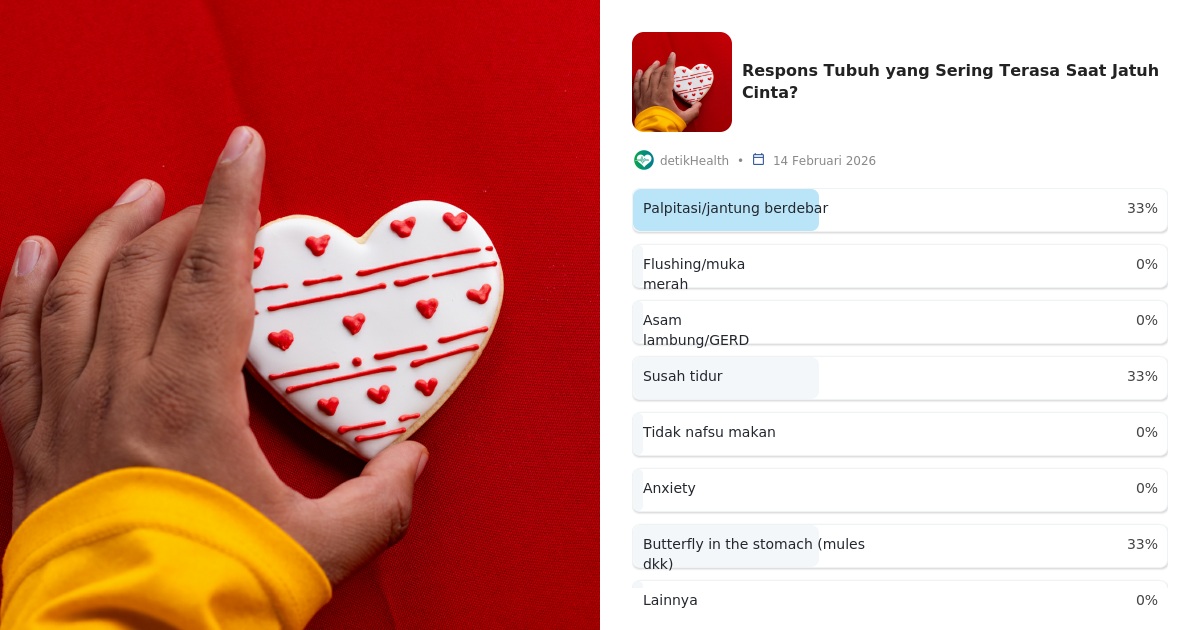 Artikel ini disadur –> Detik.com Indonesia Berita News: Respons Tubuh Apa Saja yang Sering Terasa Pada Jatuh Cinta?