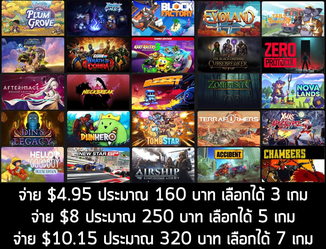จ่าย $4.95 ประมาณ 160 บาท เลือกได้ 3 เกม (เฉลี่ยเกมละ 53 บาท)