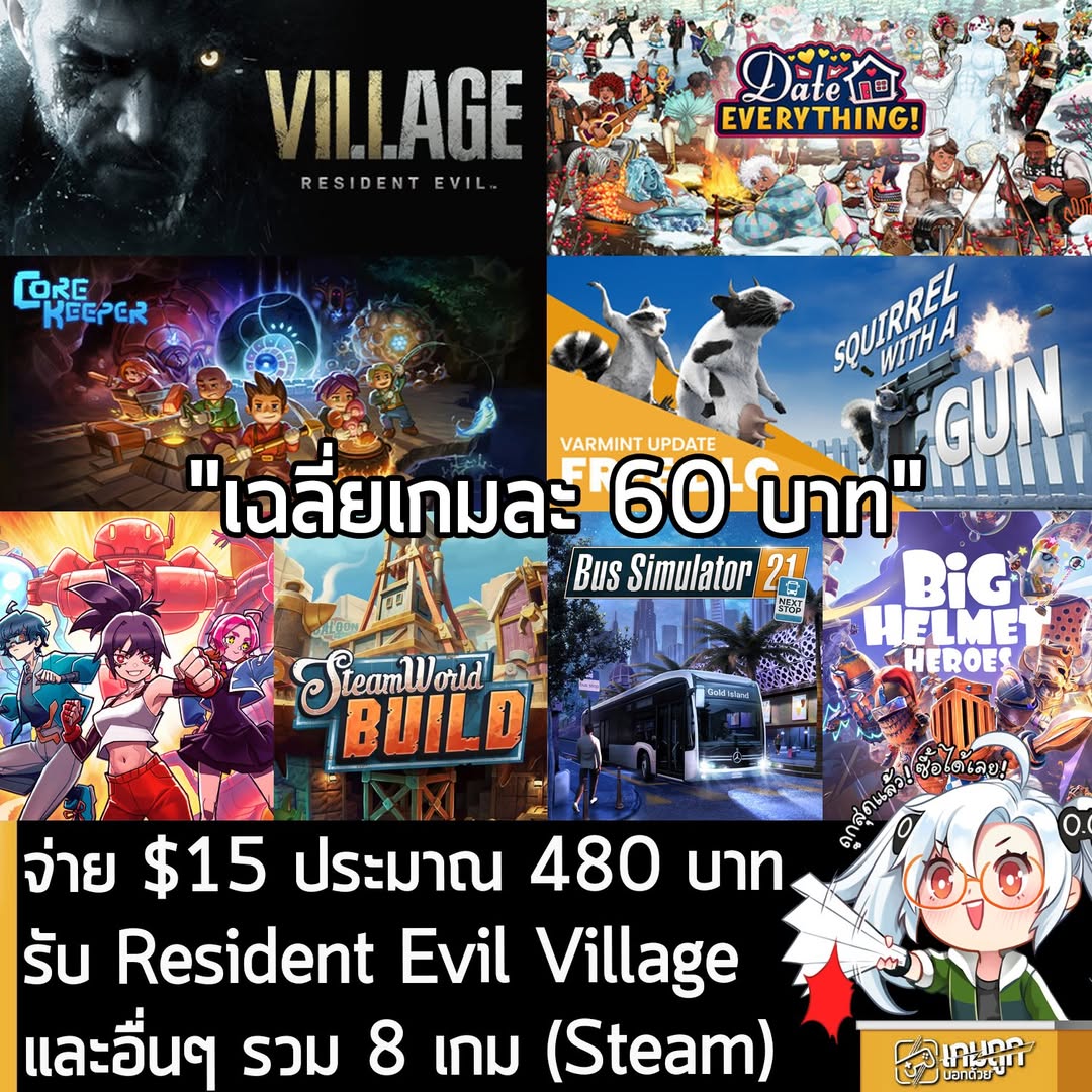 แพ็คนี้เกมเด่นแน่นอนว่าก็ต้องเป็น Resident Evil Village ภาคหลักลำดับที่ 8 ของเกมสยองขวัญเอาตัวรอดซีรีส์ผีชีวะ น่าเสียดายคือ ได้มาแค่ตัวเกมหลัก, Date Everything เกมที่คุณสามารถจีบตัวละครที่มาจากของใช้ในบ้าน ตั้งแต่ตู้เย็นยันโถส้วม, Core Keeper เกม Co-op 8 คน เอาตัวรอดในถ้ำใต้ดิน เกมมีซับภาษาไทยด้วย, Squirrel with a Gun เกมเล่นเป็นกระรอกเมืองคอน ควงอาวุธป่วนเมือง, SteamWorld Build เกมจากแฟรนไชส์ SteamWorld ที่พลิกรูปแบบเป็นแนวสร้างเมือง สรุปแพ็คนี้ ถือว่ายังพอคุ้มใช้ได้