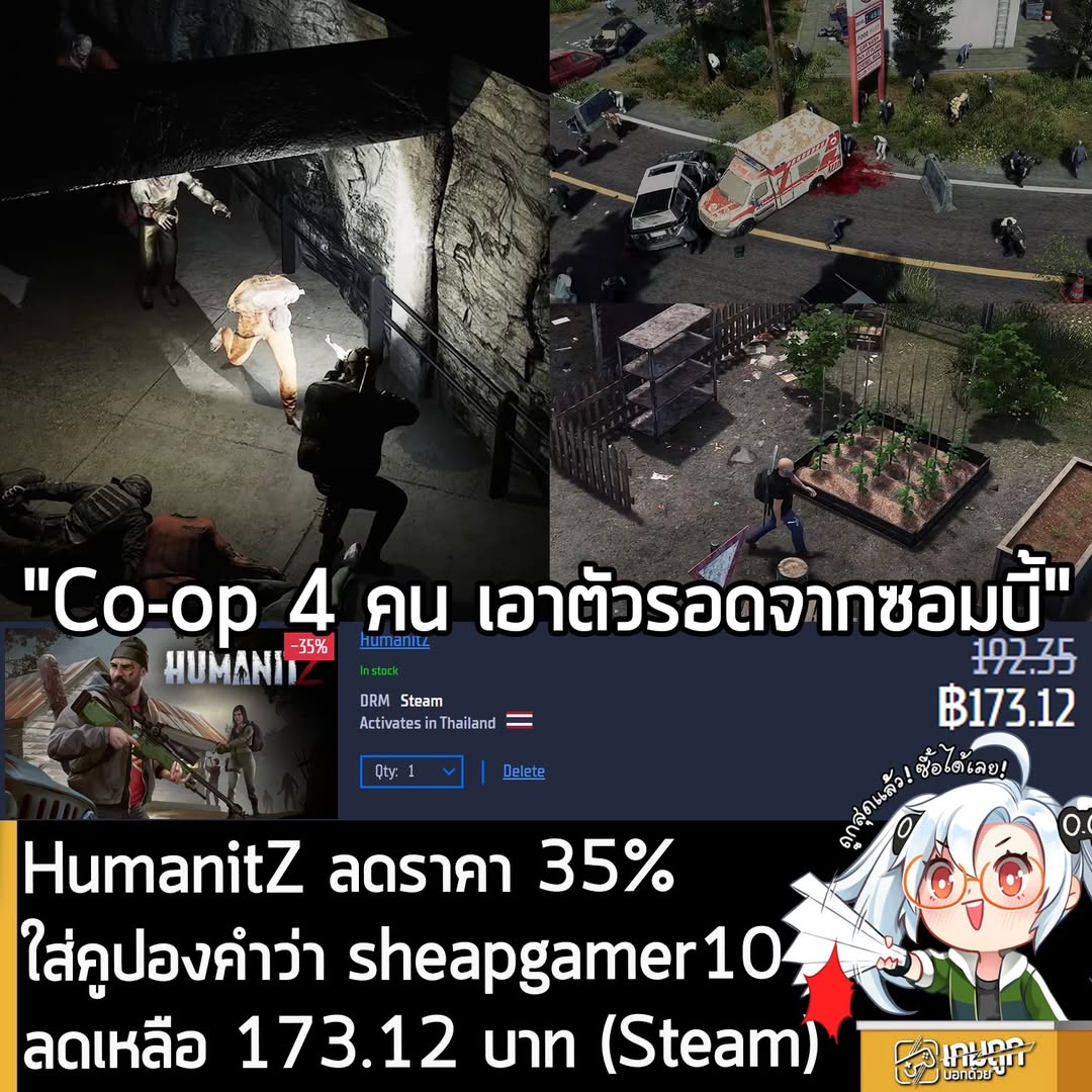 HumanitZ กำลังลดราคา 35% ใน Gamersgate เหลือราคา 192.35 บาท ใส่คูปองคำว่า sheapgamer10 ลดได้อีก 10% เหลือ 173.12 บาท (Steam)