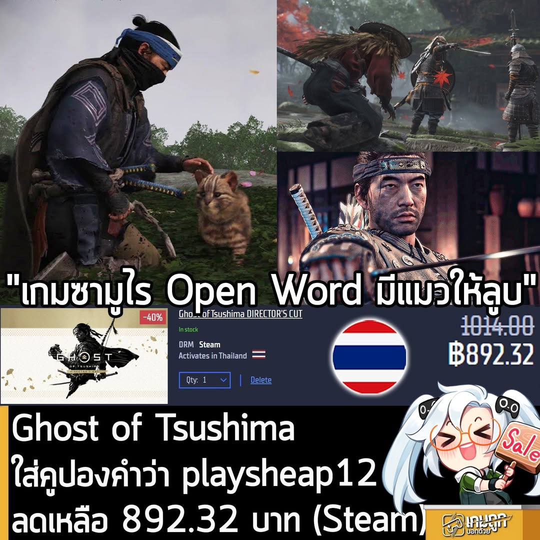 ลดเท่าบน Steam โซนไทยตอนนี้ แต่ถูกกว่าด้วยคูปองลดอีก 12% ส่วนตัวเกมก็เกมแอ็กชันผจญภัย Open World ในยุคศักดินาของญี่ปุ่น ที่เล่าเรื่องราวของ Jin ชาวญี่ปุ่นแห่งตระกูล Sakai ผู้อยู่บนเกาะ Tsushima และจะต้องกอบกู้บ้านเมืองจากการรุกรานของมองโกล ผลงานจากทีมงานตะวันตก แต่เกมออกมาดีและเคารพในวัฒนธรรมญี่ปุ่น จนแม้แต่คนญี่ปุ่นยังให้การยอมรับ เล่นได้ทั้งบุกซึ่งหน้าแบบซามูไร หรือจะลอบเร้นแบบนินจา บน PC มีโหมด Legends หรือโหมด Co-op 4 คน แล้วยังเล่น Cross-play กับ PS5 ได้ด้วย แต่ต้องเชื่อมบัญชี PSN แถมเกมมีซับภาษาไทยอีก ใครที่รอซื้อในราคาถูกๆ อยู่ก็จัดกันไป