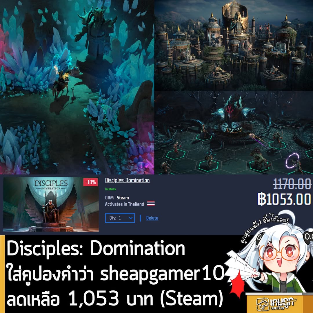 ใน Steam โซนไทยตอนนี้ ราคา 1,300 บาท ไม่เคยลดราคา ครั้งนี้ของ Gamersgate ถูกกว่าเยอะมาก ส่วนตัวเกมก็ภาคล่าสุดของเกม RPG วางแผนการรบแบบเทิร์นเบส ในโลกดาร์กแฟนตาซี ซีรีส์ Disciple ที่คุณจะได้ขึ้นครองบัลลังก์ของราชินี Avyanna และต้องประคับประคองอาณาจักรที่กำลังล่มสลายไว้ให้ได้ เกมเพิ่งเปิดให้เล่นเมื่อวันที่ 12 ก.พ. ที่ผ่านมา